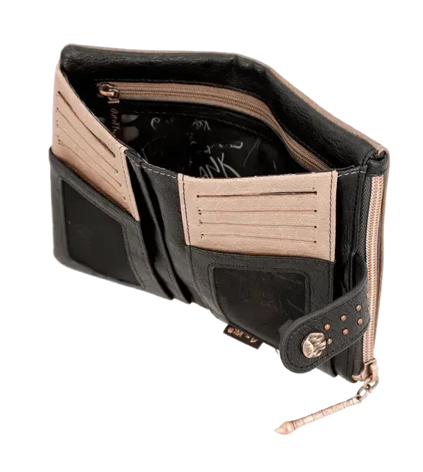 Le Portefeuille Anekke Shoen est un accessoire élégant et innovant qui offre le meilleur des deux mondes : des détails luxueux pour séduire les regards et des fonctionnalités pratiques pour ranger en toute sécurité toutes vos pièces de monnaie, cartes et billets. Doté de 10 emplacements cartes, d’une poche monnaie zippée, de poches plates et d’une poche à billets, il complétera parfaitement votre somptueux sac à main Anekke. Commandez le vôtre dès maintenant sur melisac.fr !