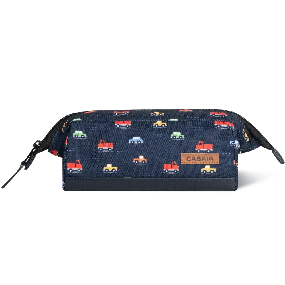 La trousse Cabaïa Maranello est idéale pour les garçons qui rêvent de moteurs et d’aventures. Son motif voiture et camion sur fond bleu marine lui donne un look à la fois ludique et élégant. Compacte, résistante et bien pensée, elle accompagne les journées d’école avec style et praticité.