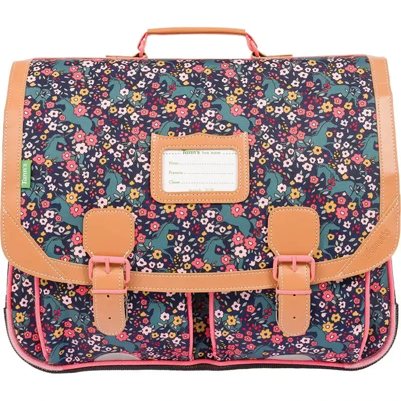 Cartable Tann’s « Alba » 41cm – Motif Fleurs et Animaux Cachés