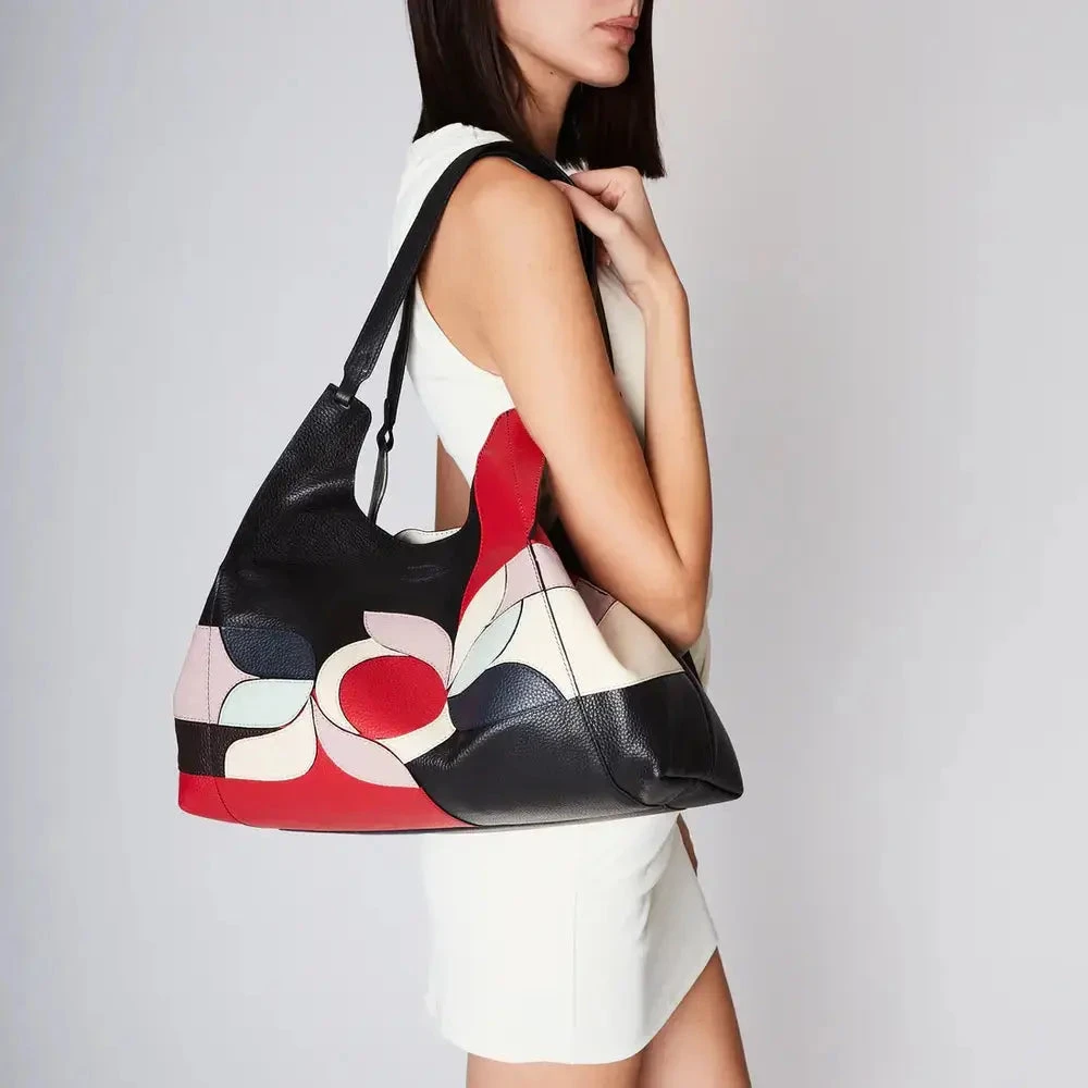 Découvrez le Grand Sac épaule Tosca Blu « Marcella », un accessoire imposant en cuir véritable qui allie robustesse et sophistication. Coulé dans une élégante palette noire, il se distingue par un patch décoratif coloré cousu sur le dos et l’avant, apportant une touche de modernité à son design intemporel.