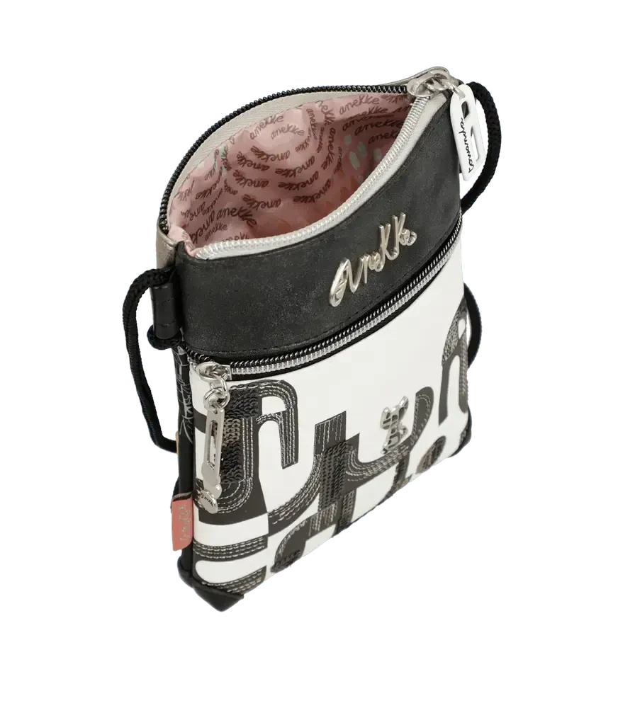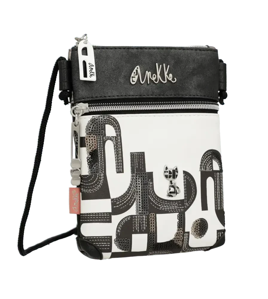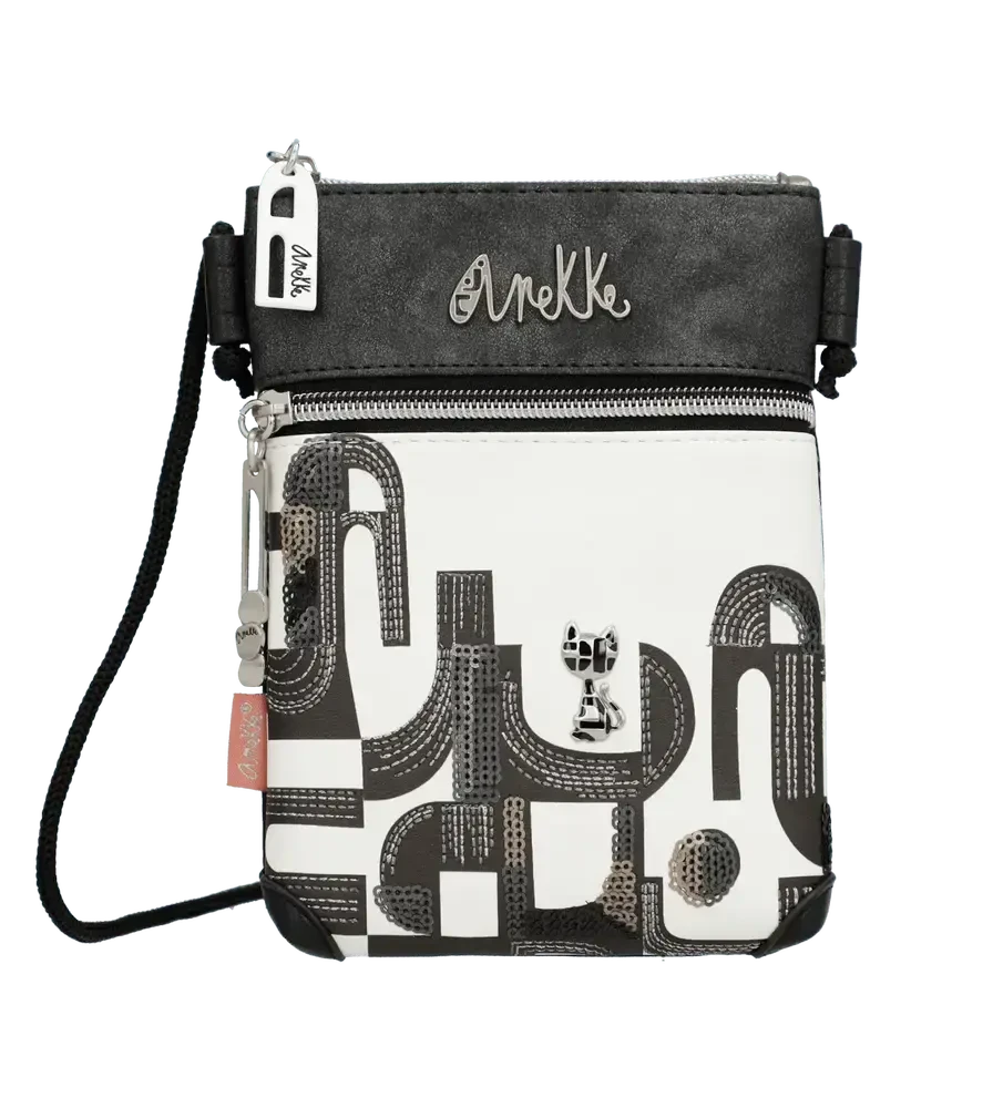 Ce mini sac Anekke femme bohème chic se distingue par son design original et rétro, inspiré des maisons colorées et des rues animées de Haight-Ashbury. La combinaison du noir et du blanc, agrémentée de motifs géométriques et de broderies, crée un look bohème chic intemporel qui ne manquera pas de vous faire remarquer.