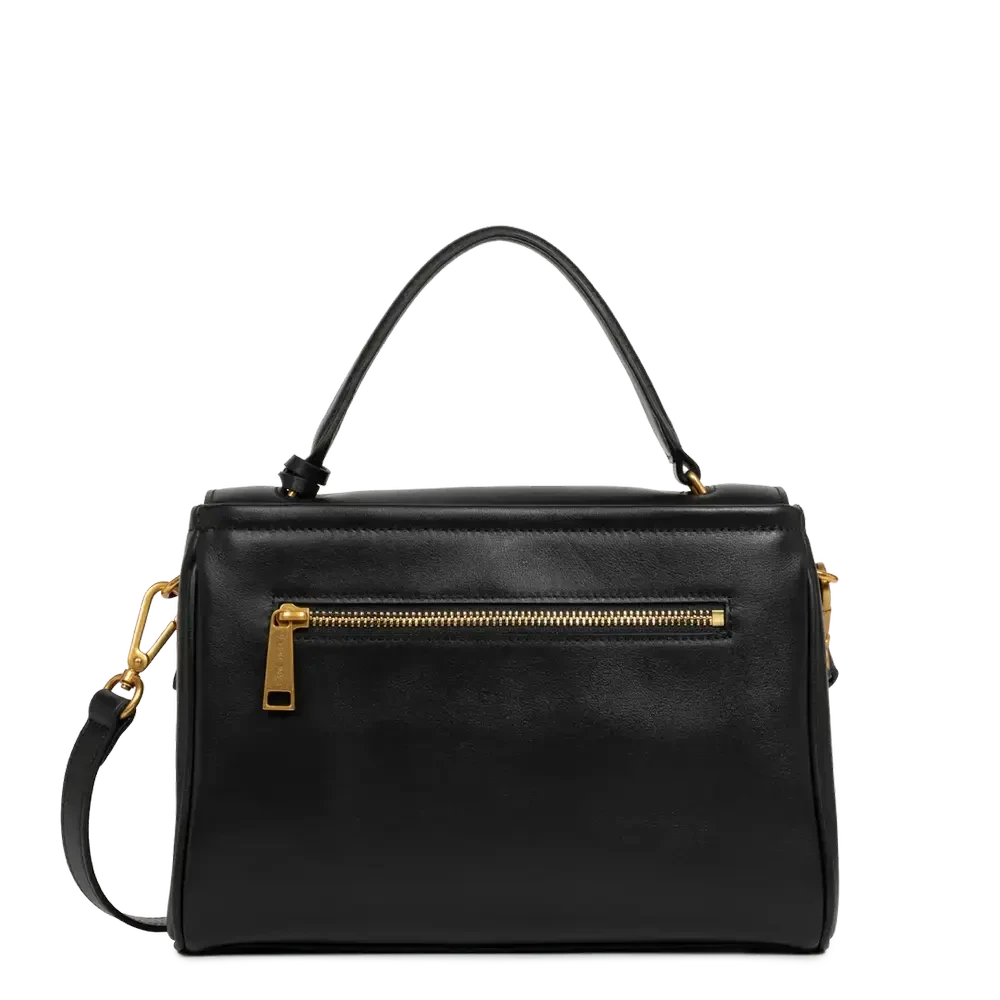 Porté : Main, épaule ou travers (anses courtes non réglables + bandoulière ajustable de 91 cm à 111 cm)