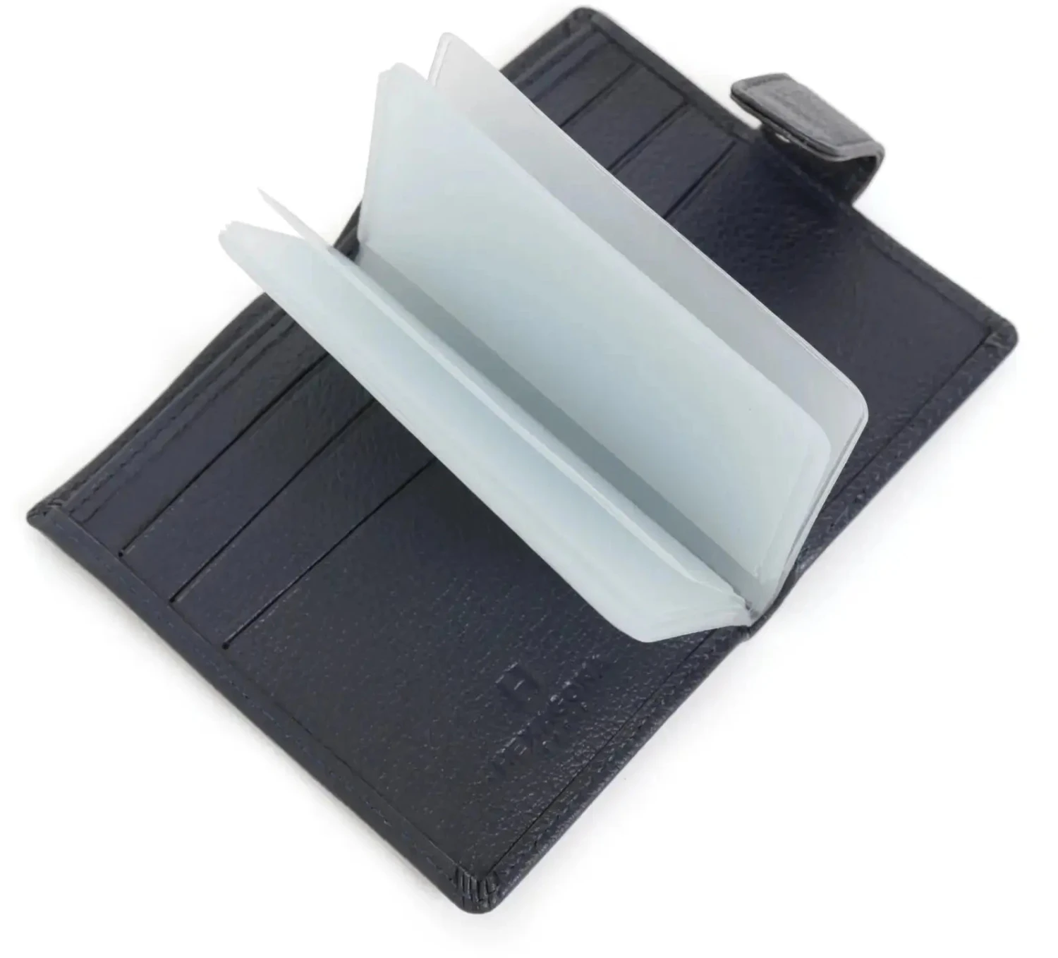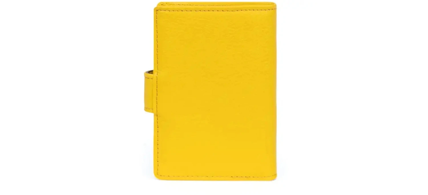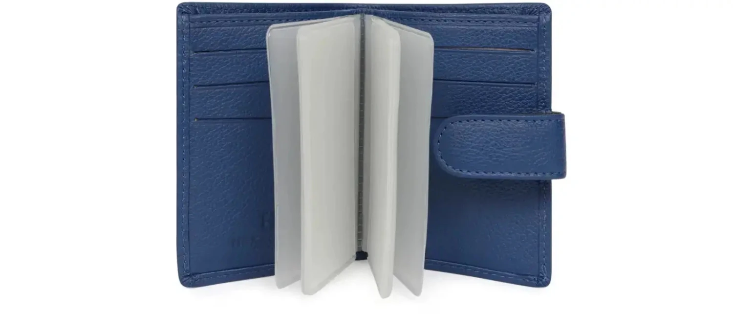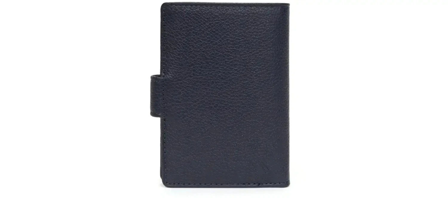 À l’intérieur, il dispose d’un volet, d’un feuillet plastique amovible avec 12 emplacements pour cartes, de 6 emplacements supplémentaires et d’une poche pour billets, garantissant une organisation efficace de vos documents essentiels. Sa fermeture à patte à pression assure une sécurité optimale, tandis que son format compact facilite son transport au quotidien.