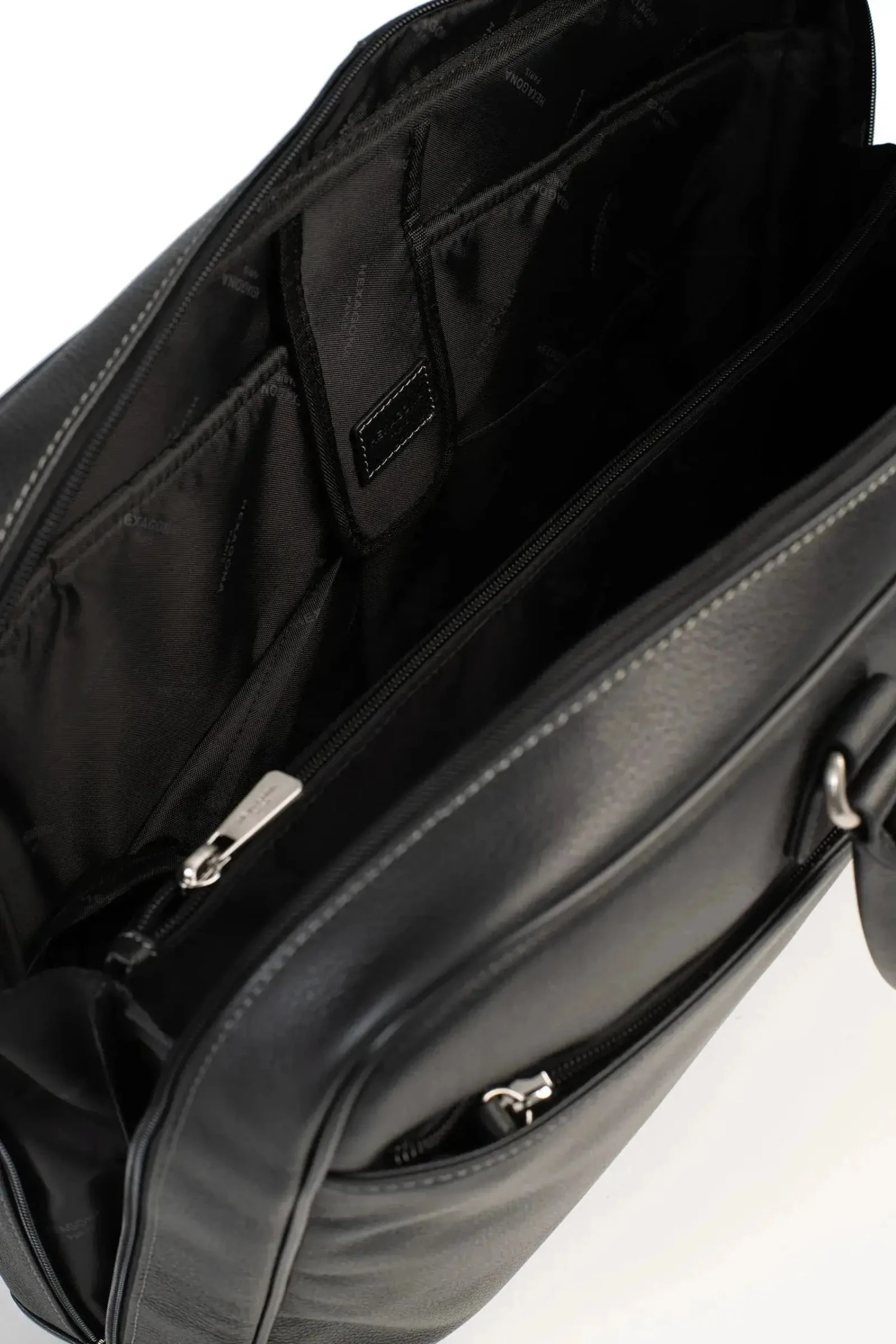 IdĂ©al pour le quotidien ou les voyages d’affaires, ce porte-documents dispose d’un compartiment principal spacieux avec un espace rembourrĂ© pour ordinateur portable 17″, une poche de sĂ©paration zippĂ©e, une poche plate zippĂ©e, ainsi que quatre poches plates pour organiser vos essentiels, dont un compartiment tĂ©lĂ©phone. Ă€ l’extĂ©rieur, il est Ă©quipĂ© d’une poche avant zippĂ©e, d’une poche arrière zippĂ©e et d’un passage trolley pour une utilisation pratique.