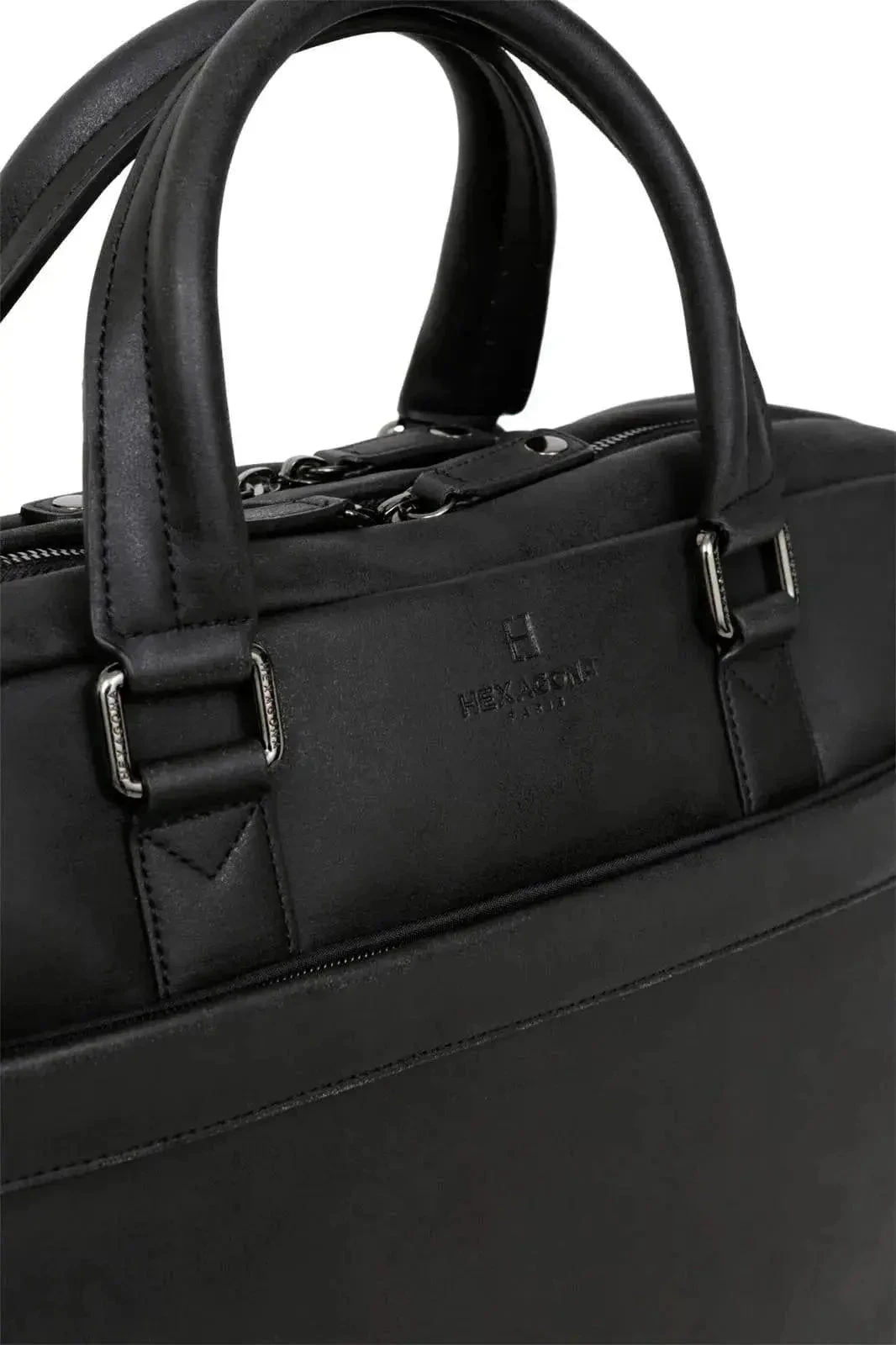 Le porte document Hexagona de Melisac est un objet de prestige à la sophistication raffinée. Sa matière synthétique de qualité supérieure repose sur une structure innovante comportant deux compartiments principaux, d’une poche plate zippée intérieure et d’une poche avant zippée extérieure. Avec une double fermeture à glissière et un passant pour glisser sur la poignée d’une valise, ce modèle est conçu pour le maximum de confort et de praticité, ainsi que pour un rangement de format A4 et 15″ pour votre ordinateur.