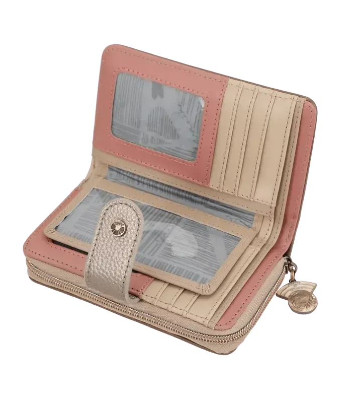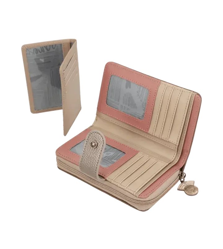 Le portefeuille de taille moyenne présente une conception pratique avec deux compartiments distincts. Le premier, doté d’une fermeture à languette, offre un espace généreux pour ranger cartes et billets. Le second, muni d’une fermeture éclair, est spécialement conçu pour accueillir vos précieuses pièces de monnaie. Son intérieur entièrement doublé assure une protection optimale de vos objets.