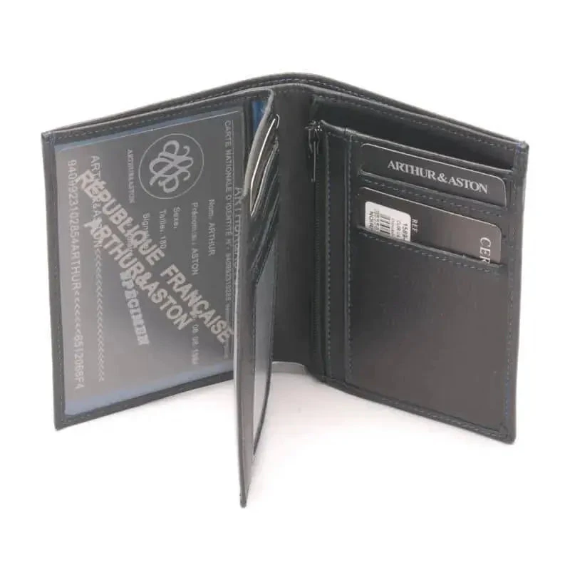 Le portefeuille europĂ©en en cuir plongĂ© Arthur & Aston est le choix ultime pour transporter vos biens de manière sĂ»re et secure. DotĂ© du système RFID intĂ©grĂ© qui protège vos informations bancaires, vous pouvez compter sur la sophistication et l’exclusivitĂ© de ce luxueux portefeuille. FabriquĂ© en cuir de qualitĂ© supĂ©rieure et dotĂ© d’emplacements pour cartes, cartes d’identitĂ©, poches plates et compartiment pour monnaie monnayĂ©, vous ĂŞtes assurĂ©s de voyager avec Ă©lĂ©gance. Disponible uniquement sur Melisac.fr.