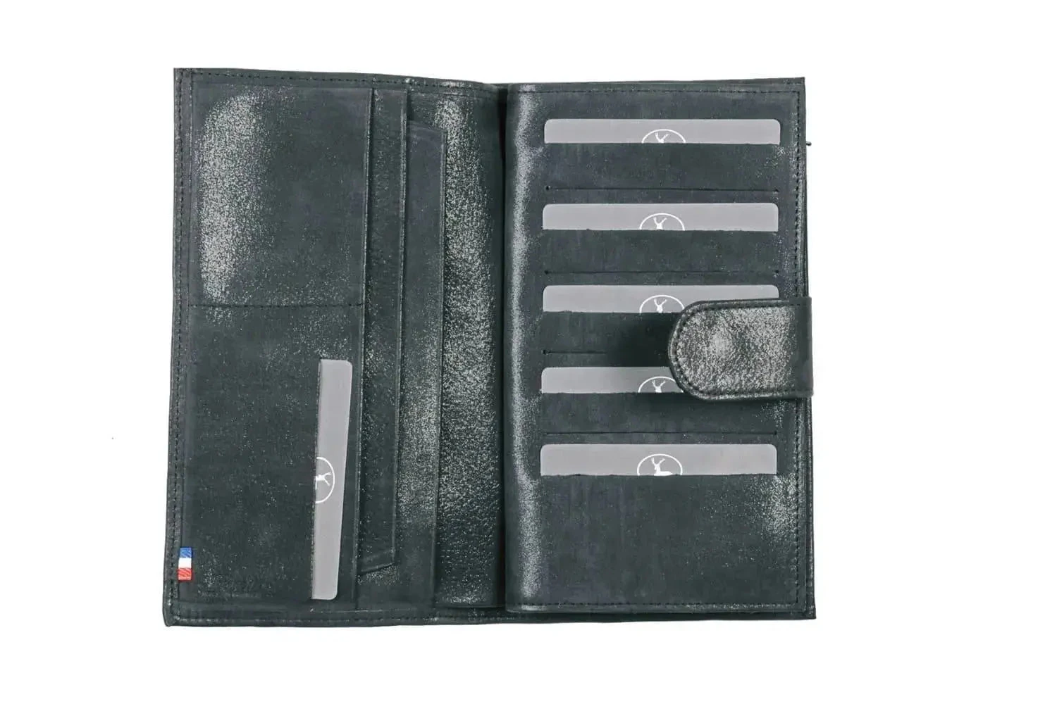 Confectionné en France à partir de cuir de vachette nubuck finition pailleté, le portefeuille Frandi est le choix idéal pour ceux qui recherchent une finition et un style raffinés. Avec ses 26 emplacements cartes, son emplacement carte d’identité, son chéquier, sa poche pour billets et son porte monnaie zippé, il est le compagnon essentiel pour conserver vos pièces de monnaie, cartes et billets en toute sécurité. Un luxe intemporel.