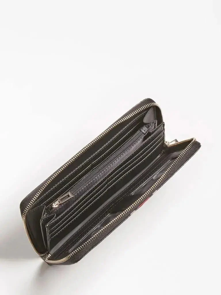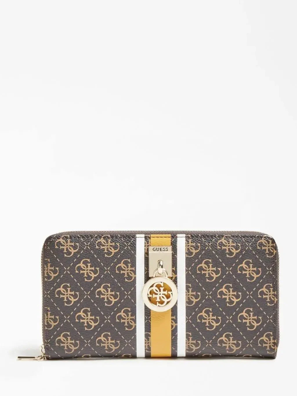 Découvrez le portefeuille Guess Logo 4G, une pièce sophistiquée et exclusive. Doté de 12 emplacements pour cartes et d’un porte-monnaie zippé, il se ferme en toute sécurité et présente des finitions métalliques couleur or pâle, ainsi qu’un logo imprimé et lettrage métallique. Fabriqué dans une matière synthétique de grande qualité, il procure une touche raffinée à votre look et allie élégance et sophistication.