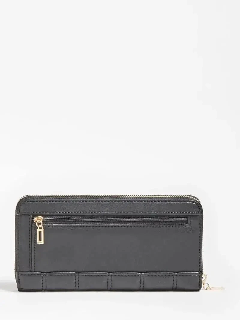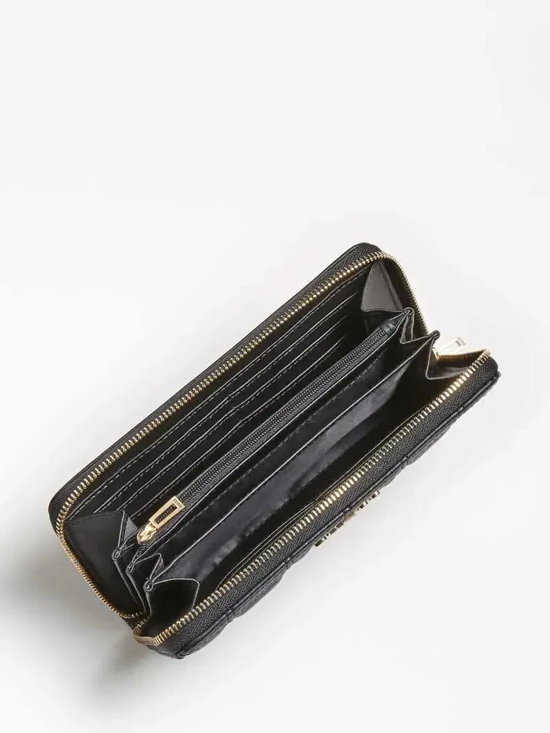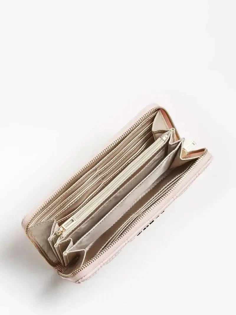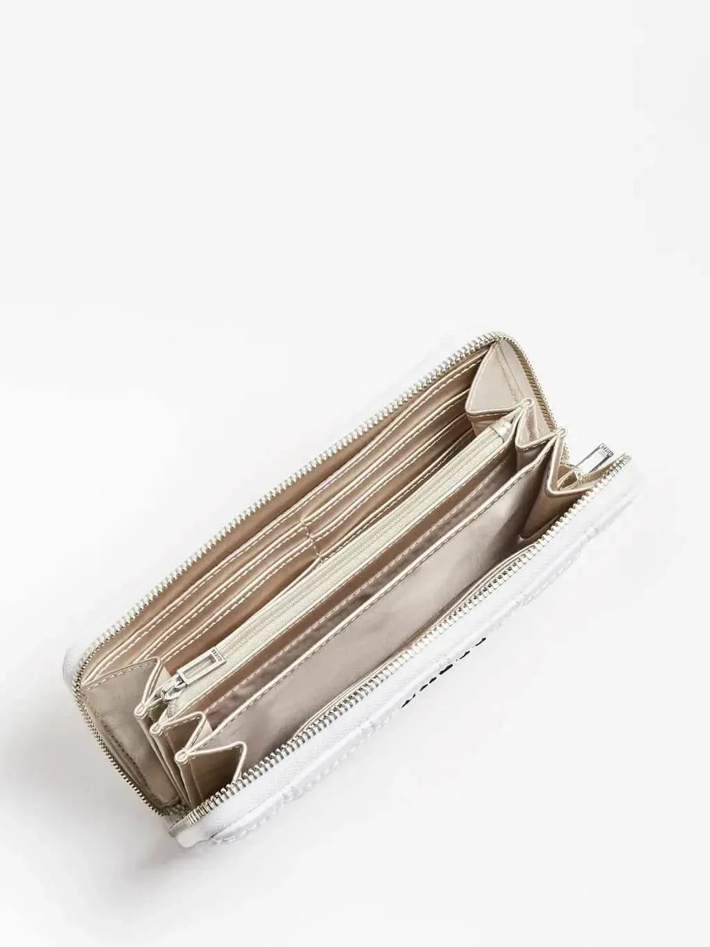 Luxe et élégance se déploient dans ce portefeuille Guess « KAMINA », avec ses finitions métalliques en or pâle et son lettrage logo en métal. Sa matière synthétique et sa façon capitonnée rendent l’expérience d’utilisation unique et exclusive. Doté de 12 emplacements cartes et d’un porte monnaie zippée, il mesure 21x10x2 cm. Une pièce indéniablement distinguée.
