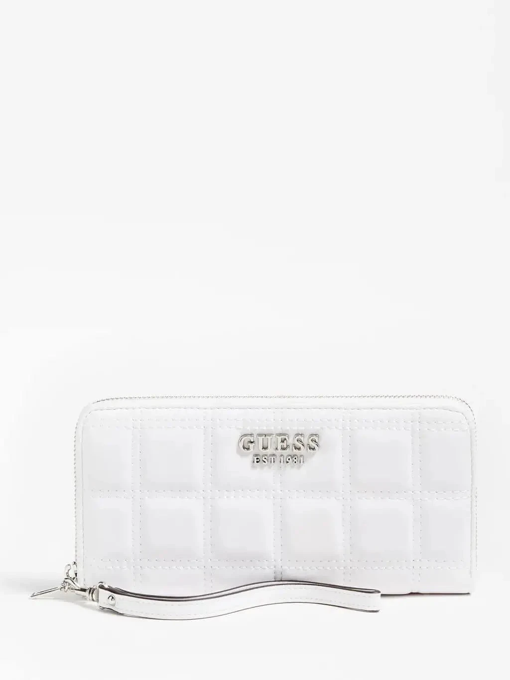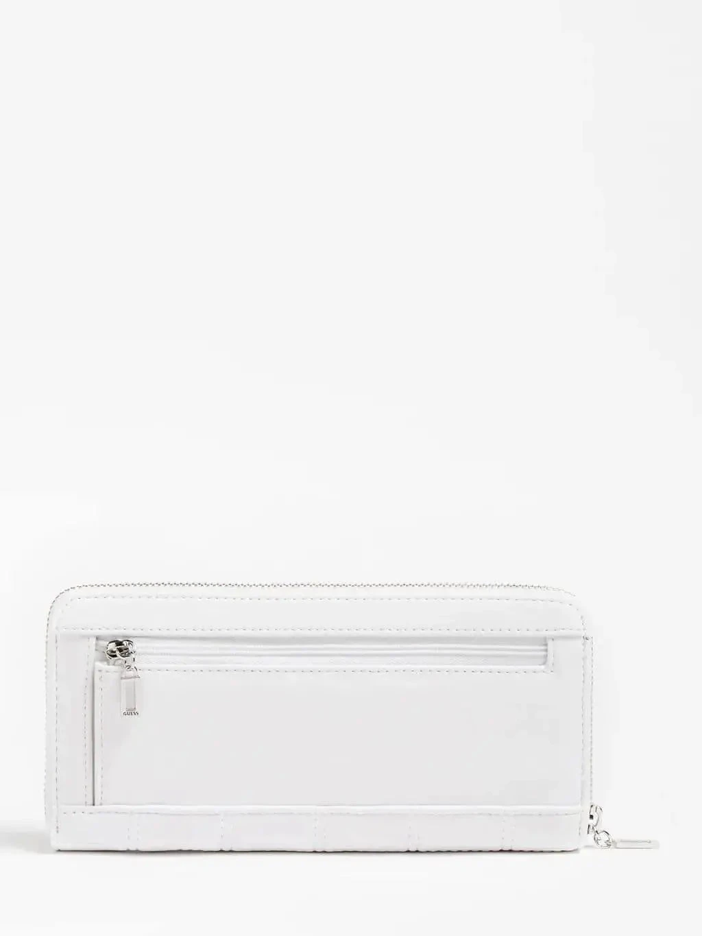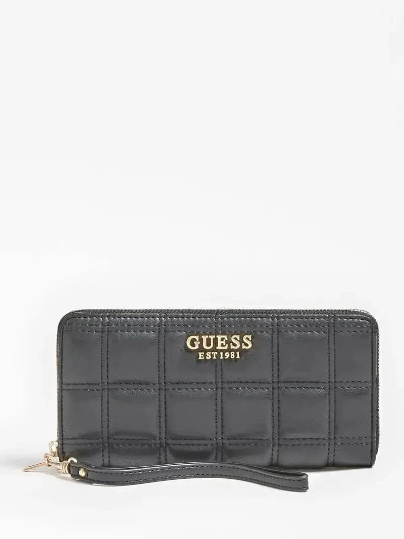 Luxe et élégance se déploient dans ce portefeuille Guess « KAMINA », avec ses finitions métalliques en or pâle et son lettrage logo en métal. Sa matière synthétique et sa façon capitonnée rendent l’expérience d’utilisation unique et exclusive. Doté de 12 emplacements cartes et d’un porte monnaie zippée, il mesure 21x10x2 cm. Une pièce indéniablement distinguée.