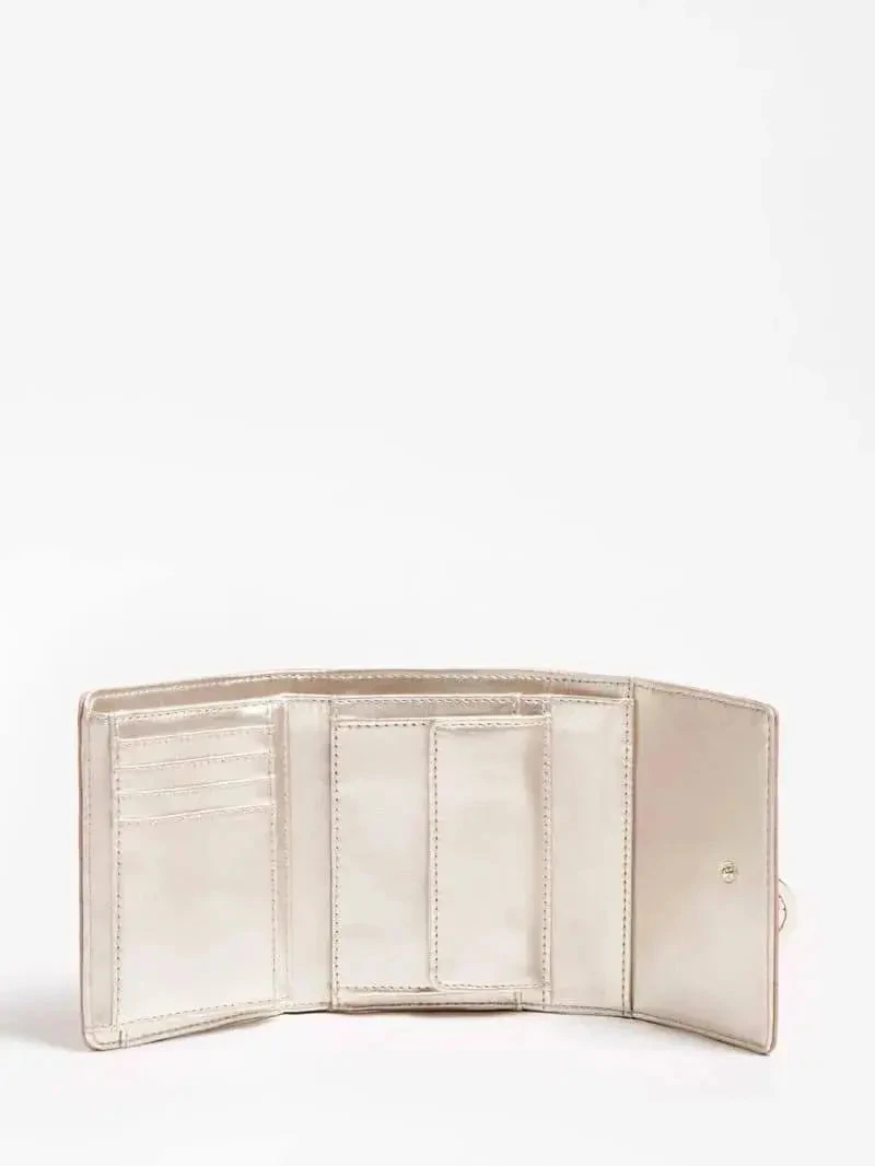 Sublimez votre look avec ce portefeuille de luxe Guess Ninnette Logo 4G. La matière en synthétique de qualité et le superbe imprimé Peony all-over en font une pièce luxueuse et intemporelle, tandis que la métallerie couleur or pâle et le logo 4G du devant affirment un style contemporain et exclusif. Pratique avec 4 emplacements cartes, un porte-monnaie et un emplacement billet, ce portefeuille est tout ce dont vous avez besoin pour garder vos effets personnels à portée de main. Découvrez-le sur melisac.fr.