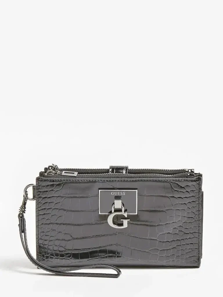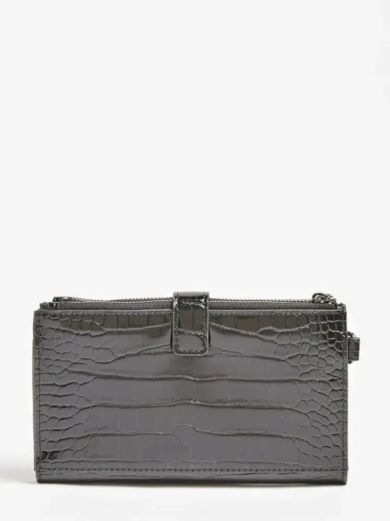 Le portefeuille Guess Stephi Croco est le compagnon idéal pour vos sorties. Ses dimensions compactes (19x11x2 cm) ne vous encombrent pas. Avec ses pièces métalliques couleur or pâle et son imprimé croco, ce portefeuille habille luxueusement votre tenue. Pratique et fonctionnel, il dispose de 2 poches zippées, d’un emplacement pour smartphone, d’un emplacement à billet, de 2 poches plates, ainsi que 7 emplacements cartes. Découvrez-le sur Melisac.fr.