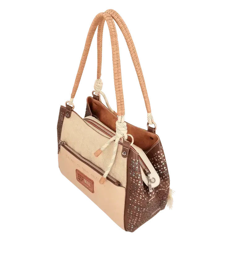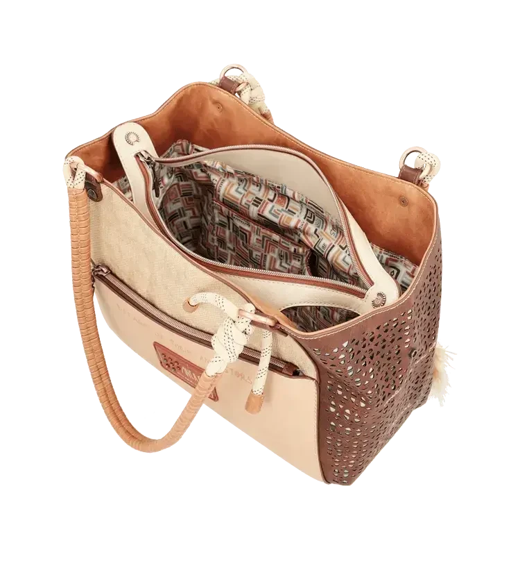 Voyagez avec style avec le sac Anekke Menire ! Avec ses dimensions généreuses, vous pourrez ranger l’essentiel de votre journée (et plus !) grâce aux poches intérieures et extérieures pratiques. Offrez-vous un look de luxe avec le motif Tribe sur l’extérieur et prenez-vous en main avec le Sac Anekke Menire ! C’est l’accessoire indispensable pour tous les aventuriers !