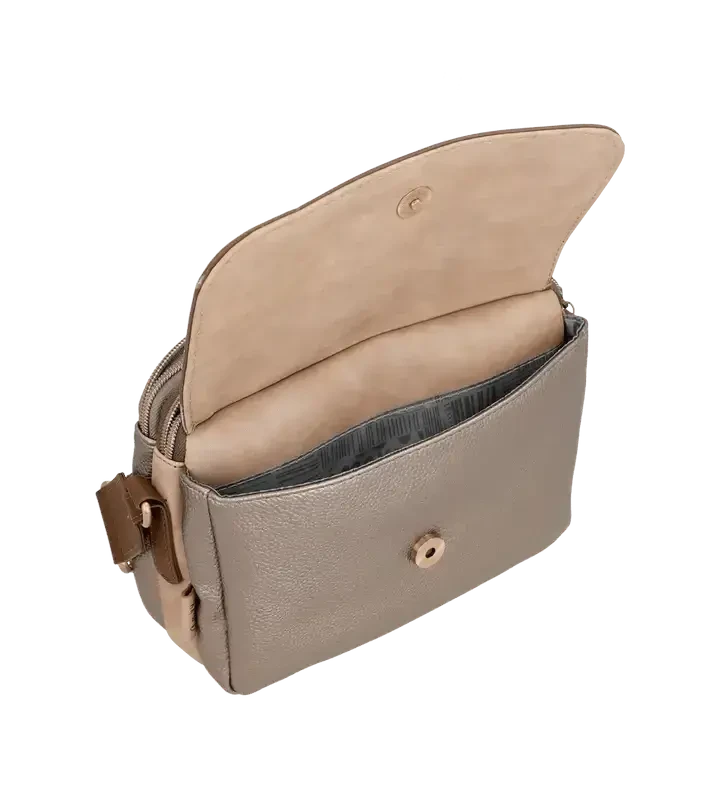 Ce sac bandoulière à rabat incarne le charme de l’époque avec ses 3 compartiments spacieux, offrant un espace généreux pour organiser vos essentiels. Sa taille moyenne à grande et sa poche arrière ajoutent une praticité supplémentaire à son allure élégante.