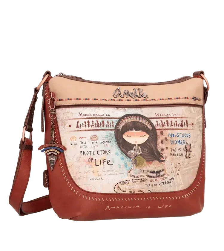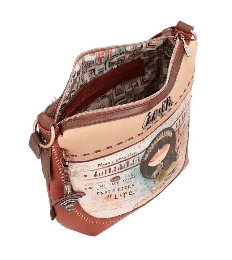 Tombez sous le charme de ce spectaculaire sac Bandoulière Anekke Menire. Décoré de l’original imprimé Menire, il est parsemé de symbolisme et de références à la culture des femmes d’Amazonie. Intérieur avec une poche zippée et deux poches simples, et une poche extérieure zippée au dos avec une bandoulière réglable pour l’emporter en toute élégance. Son design raffiné et luxueux, et sa contenance idéale en font le compagnon de chaque jour. Complétez le look avec un porte-monnaie ou un portefeuille Anekke.