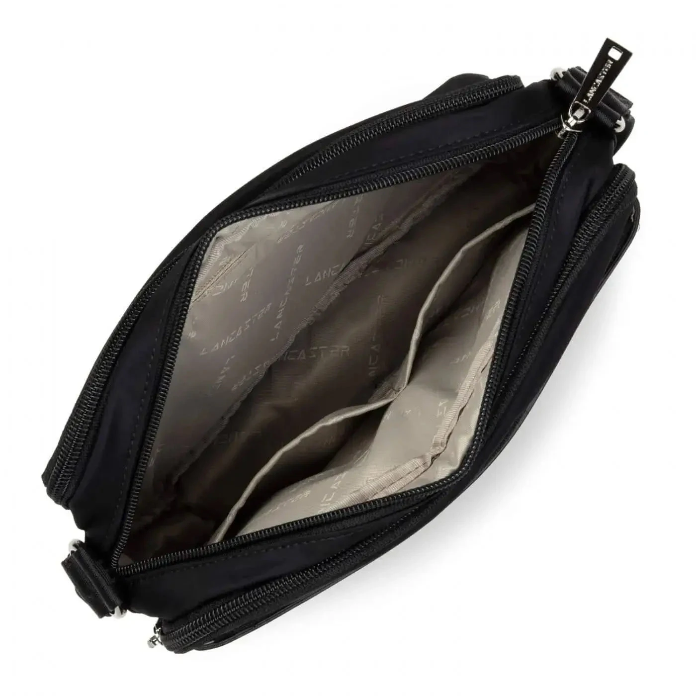 Résolument moderne, le sac bandoulière Lancaster Basic Verni se distingue grâce à sa matière exclusive en toile garnie de cuir de vachette, qui présente une touche avant-gardiste et distinguée. Sa conception comprend un compartiment principal zippé, doté de1 poche zippée et de2 poches simples, ainsi que d’une grande poche zippée en façade et à l’arrière.Une bandoulière réglable offre une liberté de mouvement et le luxe d’un port épaule ou en travers. Sa taille pratique (25x18x8,5 cm) en fait un accessoire idéal dans n’importe quel contexte.