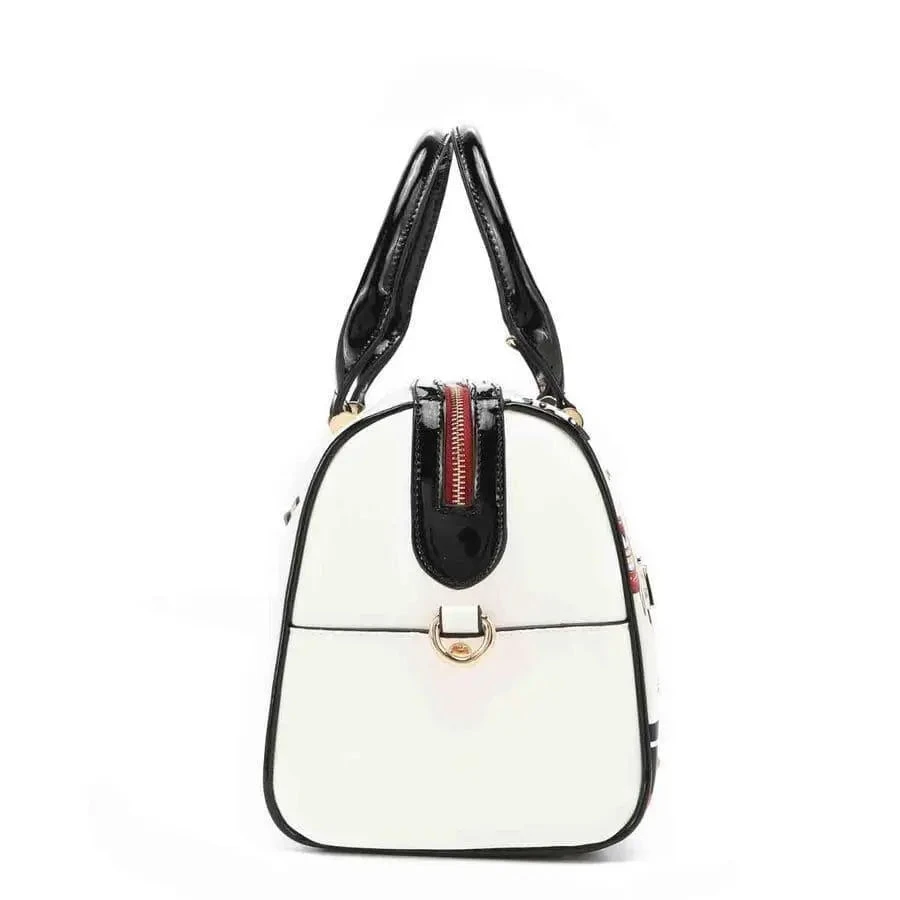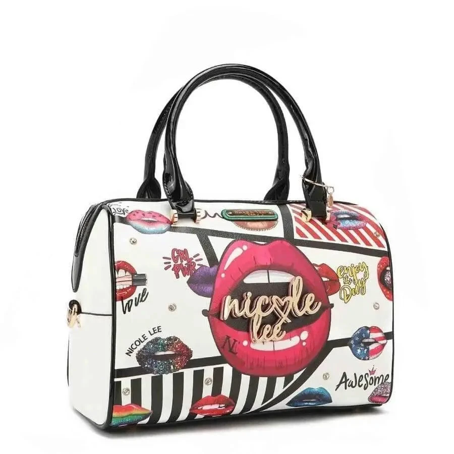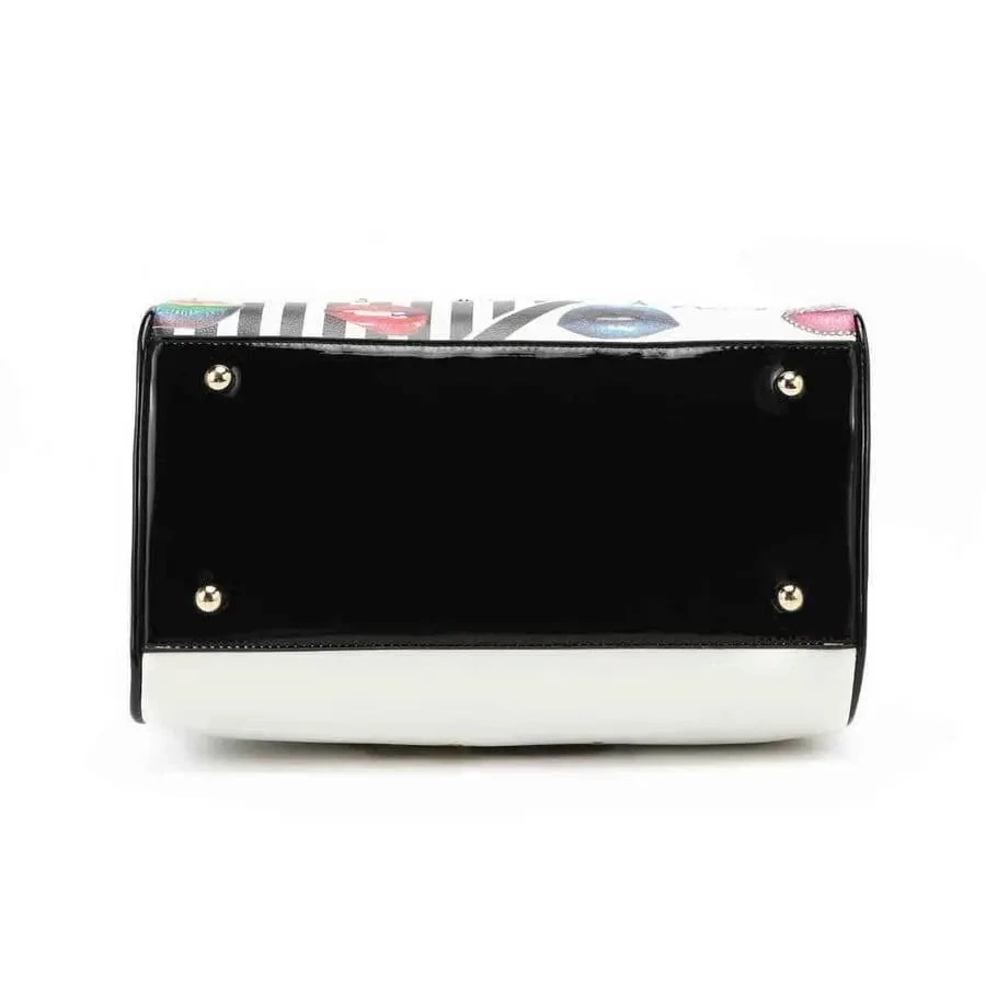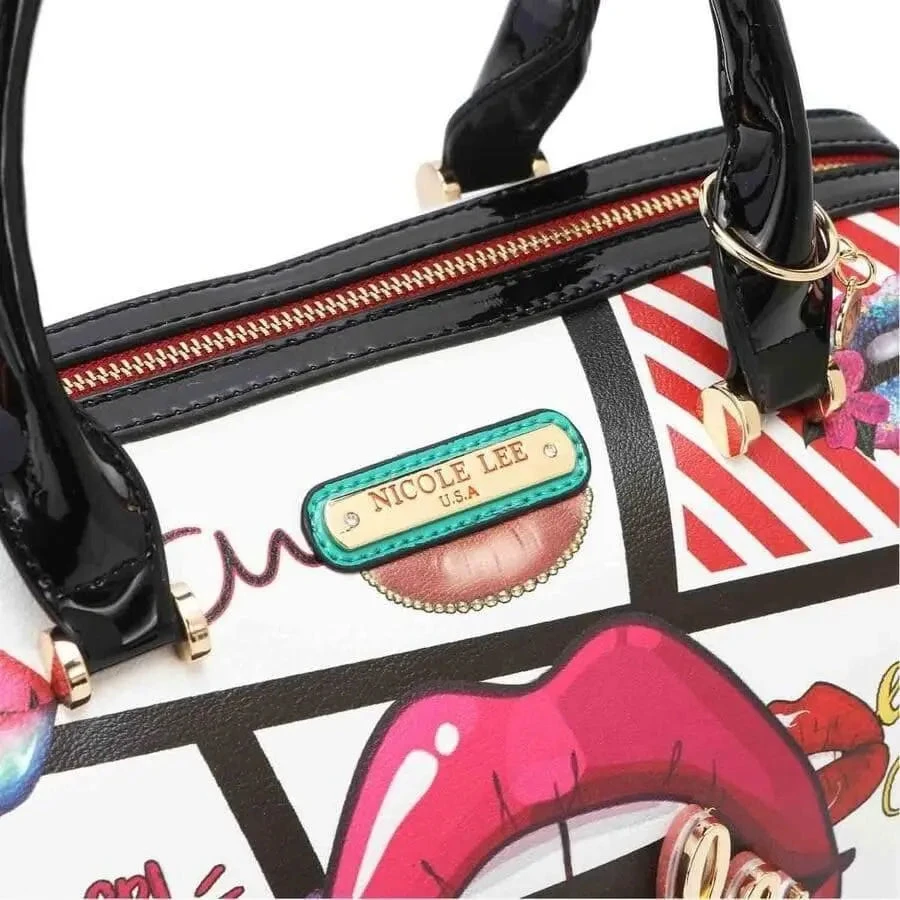 Célébrez la sophistication avec l’élégant Sac à main Nicole Lee « Sugar Lips ». Doté d’un imprimé exclusif et d’une poignée en vernis noir luxueuse, ce sac se distingue des autres avec des caractéristiques premium. Il est composé d’une pochette zippée et de deux poches plates à l’intérieur, et est doté d’une pochette à l’extérieur qui vous permet de ranger vos effets personnel. Complété par une bandoulière amovible et réglable, ce sac rendra votre look très chic au quotidien.