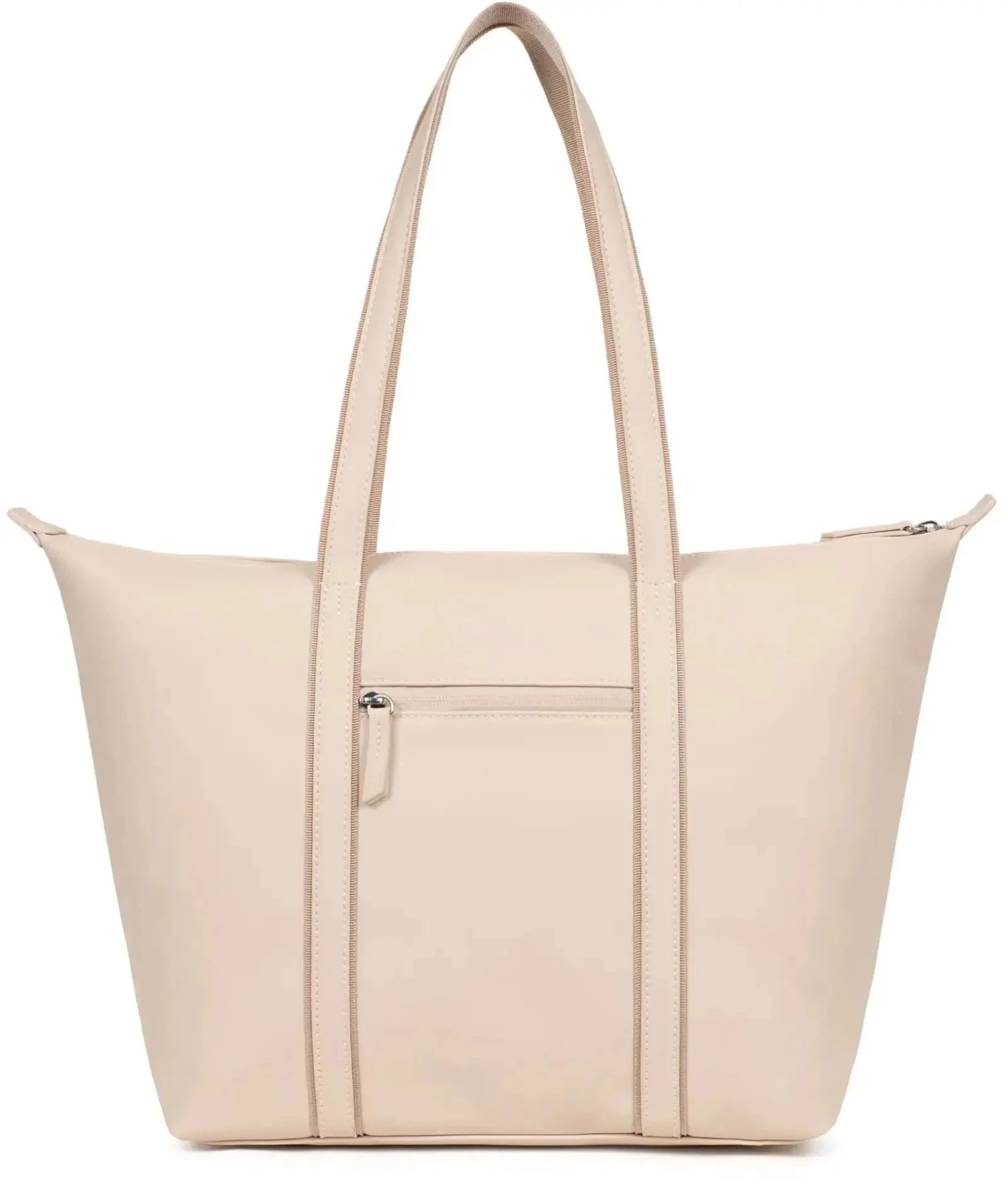 Spacieux et bien organisé, il dispose d’un compartiment principal avec une poche plate zippée et deux poches plates, dont une pour téléphone. À l’extérieur, une poche arrière zippée offre un rangement supplémentaire pratique. Les anses non réglables de 58 cm permettent un port confortable à l’épaule, et son format est compatible avec les documents A4 et les téléphones portables.
