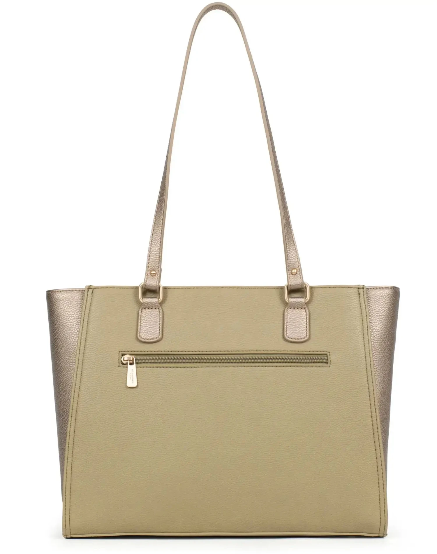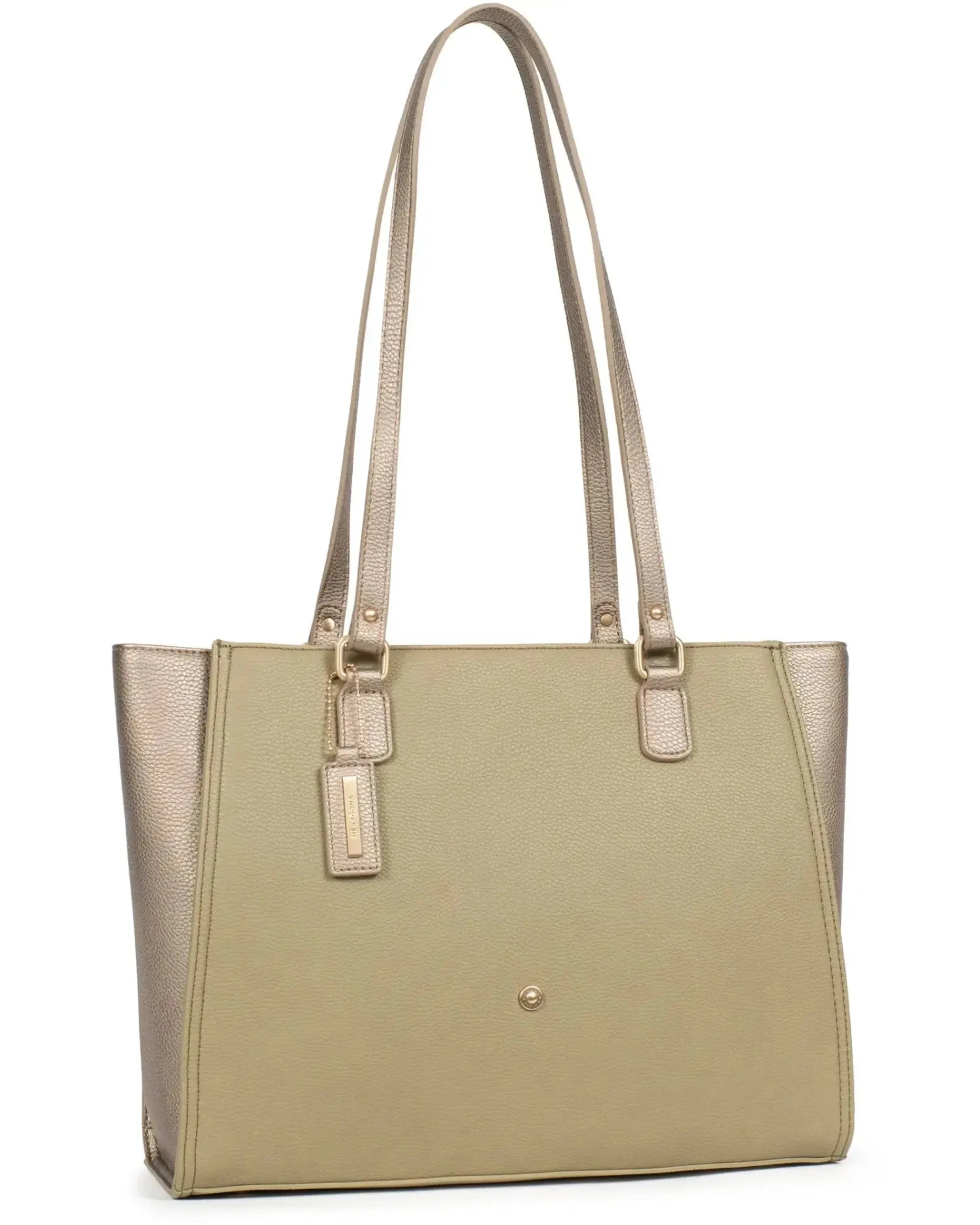 Le Sac Cabas Hexagona « Abi », disponible sur Melisac.fr, allie élégance et engagement écologique. Fabriqué en matière synthétique grainée recyclée (45% Synthétique, 40% Polyester recyclé, 15% Polyuréthane recyclé), ce cabas est pensé pour les femmes actives et soucieuses de l’environnement. Sa doublure synthétique et ses finitions or brossé lui confèrent une allure sophistiquée.