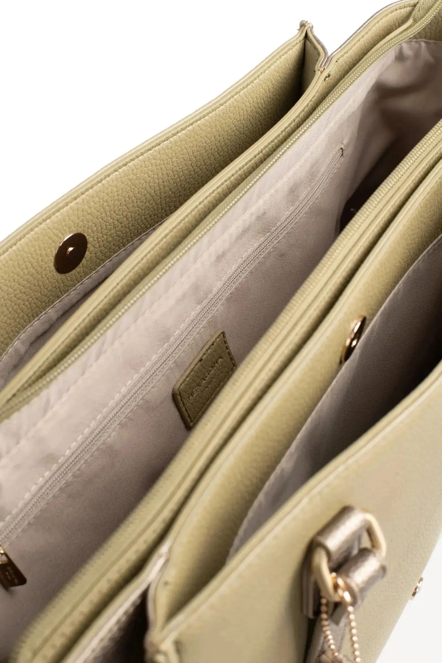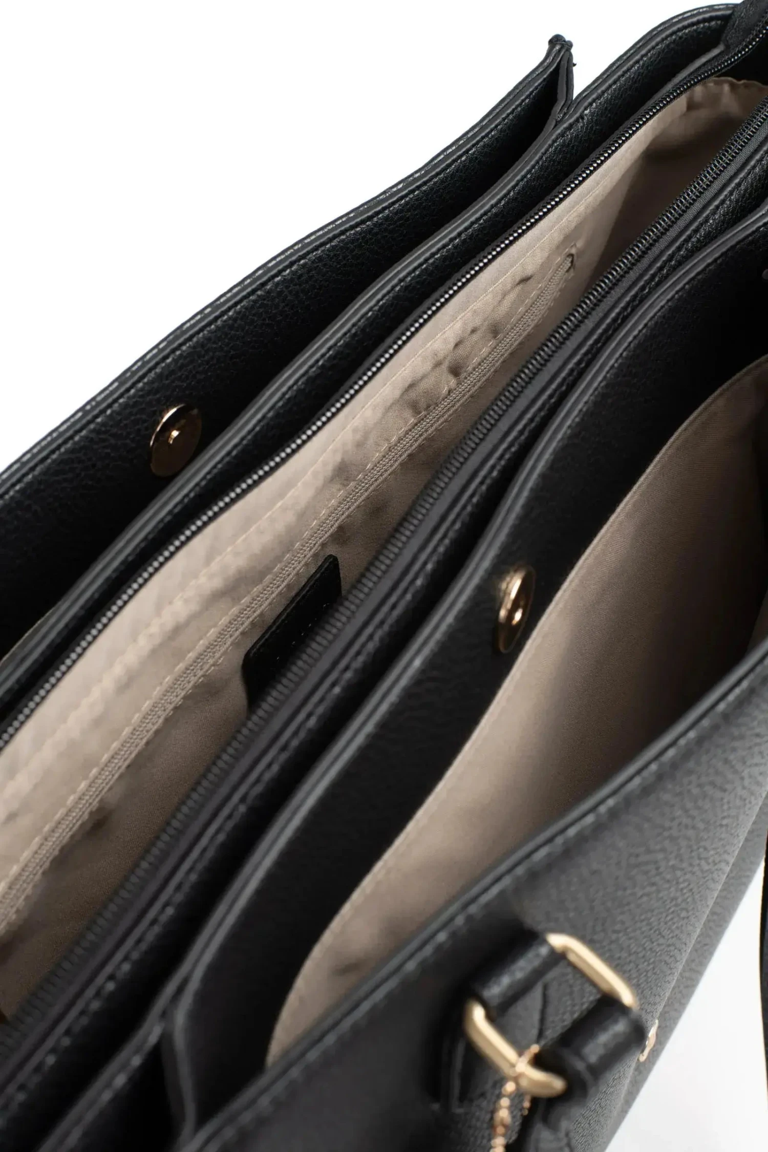Doté de trois compartiments principaux, d’une poche de séparation zippée et d’un espace dédié au téléphone, ce sac garantit une organisation optimale. À l’extérieur, une poche arrière zippée offre un rangement supplémentaire. Avec ses anses non réglables de 69 cm, il peut être porté à l’épaule pour un confort optimal. Compatible avec les formats A4 et téléphone portable, il s’adapte à vos besoins quotidiens.