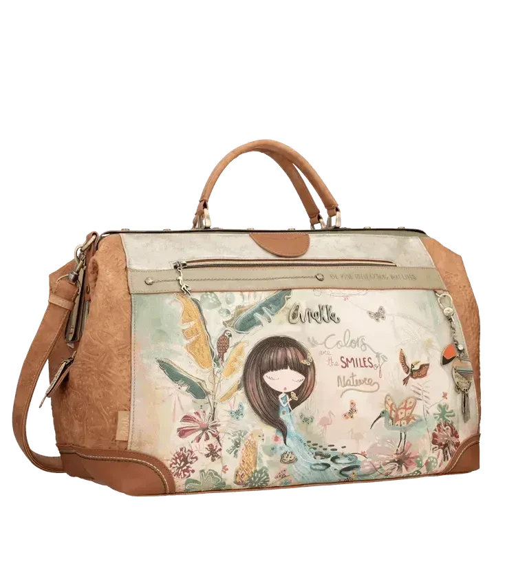 Explorez le monde en style avec le Sac week-end Anekke Amazonia. Sa magnifique décoration en broderie d’imprimé Amazonia et son pendentif Anekke vous offrent une touche luxueuse et élégante. Équipé d’une double poignée et d’une bandoulière réglable, ce sac vous permet de le transporter de manière pratique et confortable. A l’intérieur, retrouvez une poche zippée et 2 poches plates pour organiser vos effets de voyage. A l’extérieur, une poche zippée en façade, une poche zippée au dos et un passage trolley vous rendent le déplacement encore plus aisé. Vivez des aventures sans limites avec le sac de voyage Amazonia d’Anekke !