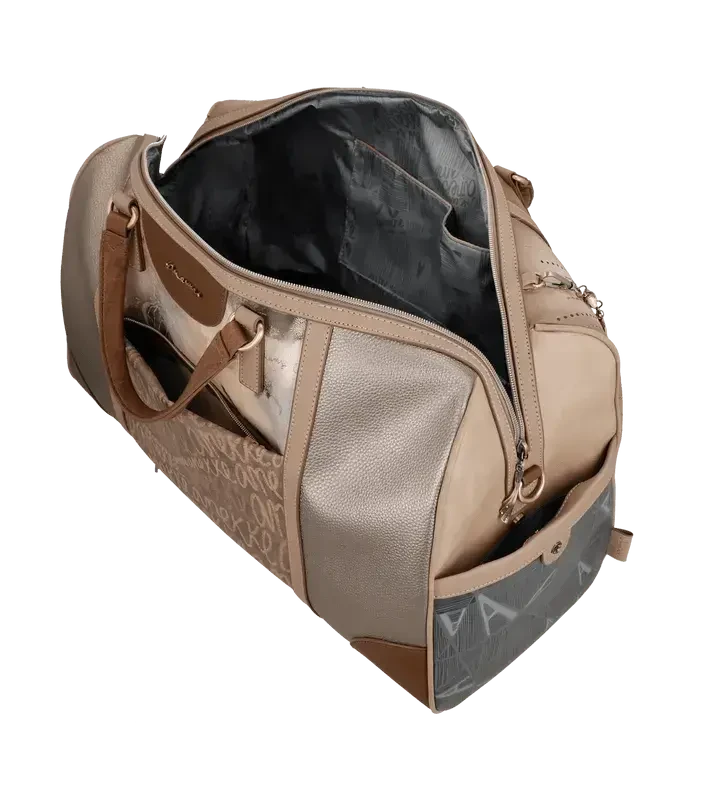 Le sac de voyage Anekke Hollywood vous transporte dans le luxe nostalgique de l’âge d’or du cinéma. Doté d’une fermeture éclair pratique, il offre une généreuse capacité de rangement, idéale pour vos escapades. L’intérieur doublé est minutieusement conçu avec plusieurs poches pour une organisation optimale. Une poche frontale et une ouverture arrière permettent de le fixer aisément sur une valise à roulettes, offrant une solution élégante pour vos déplacements. Deux poches latérales supplémentaires ajoutent une fonctionnalité supplémentaire à ce compagnon de voyage polyvalent.