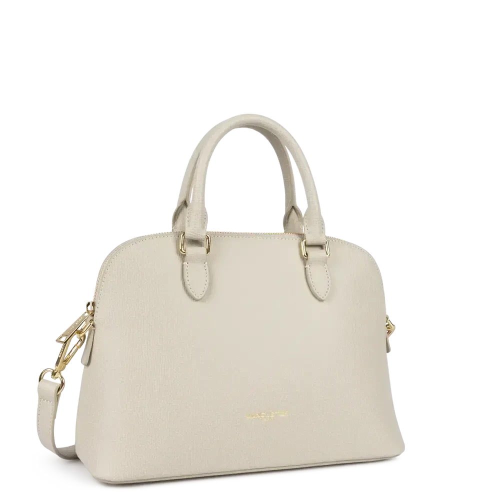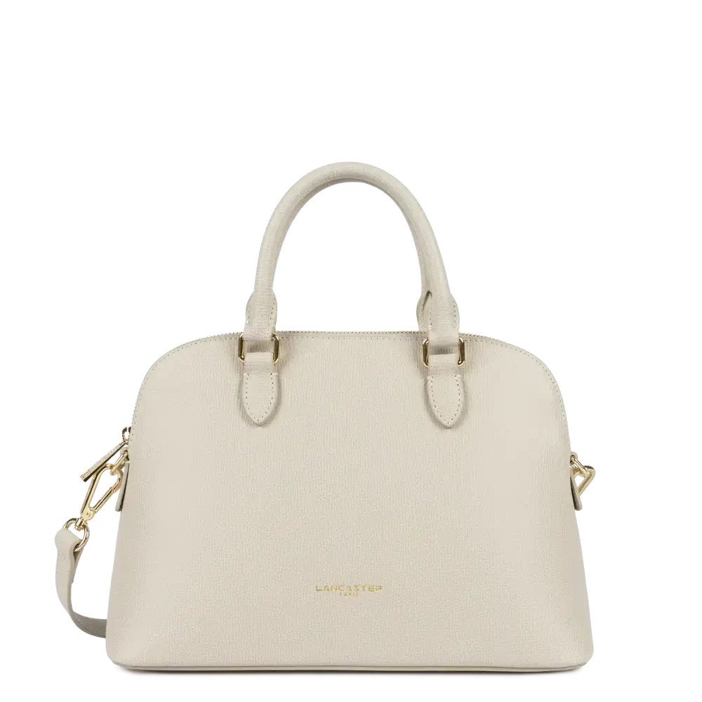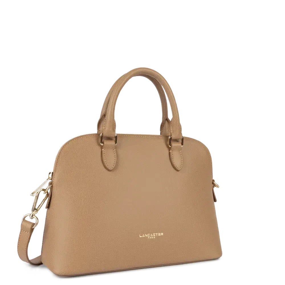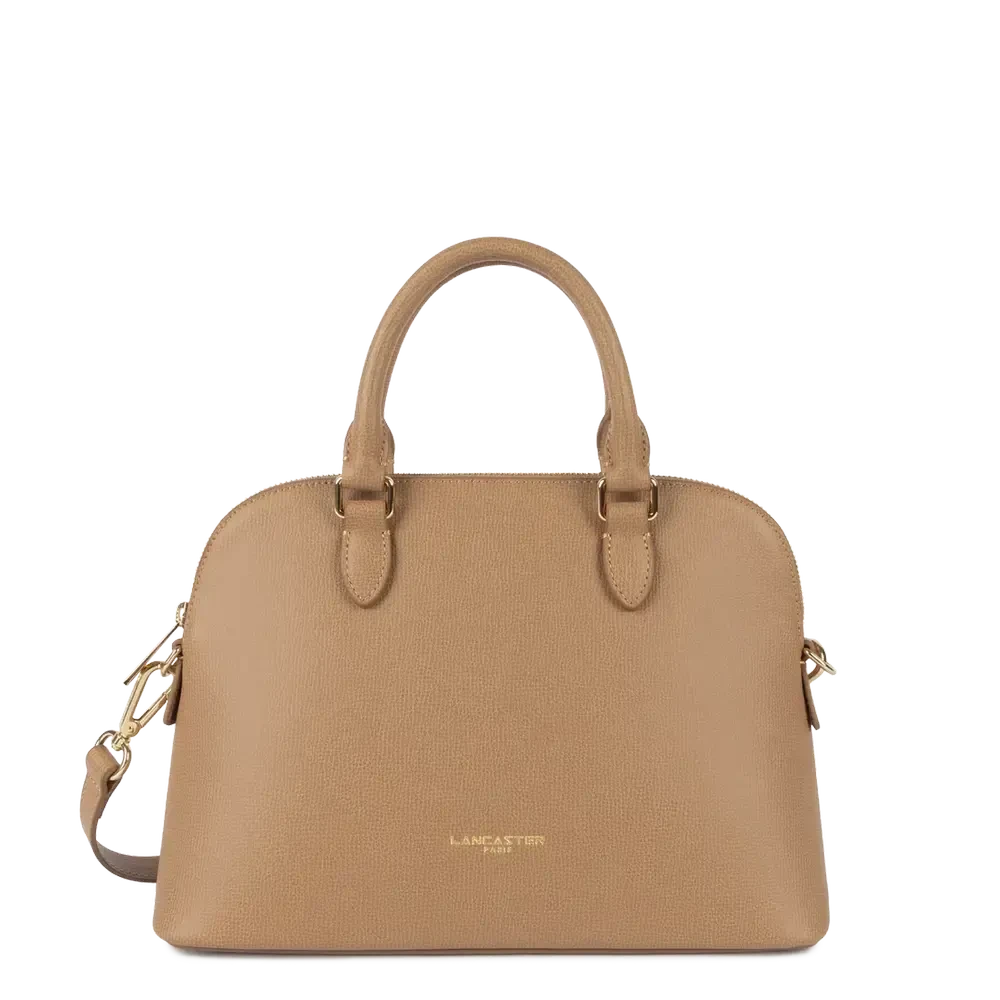 Porté : Main, épaule ou travers (anses doubles non réglables + bandoulière amovible et ajustable de 84 cm à 121 cm)