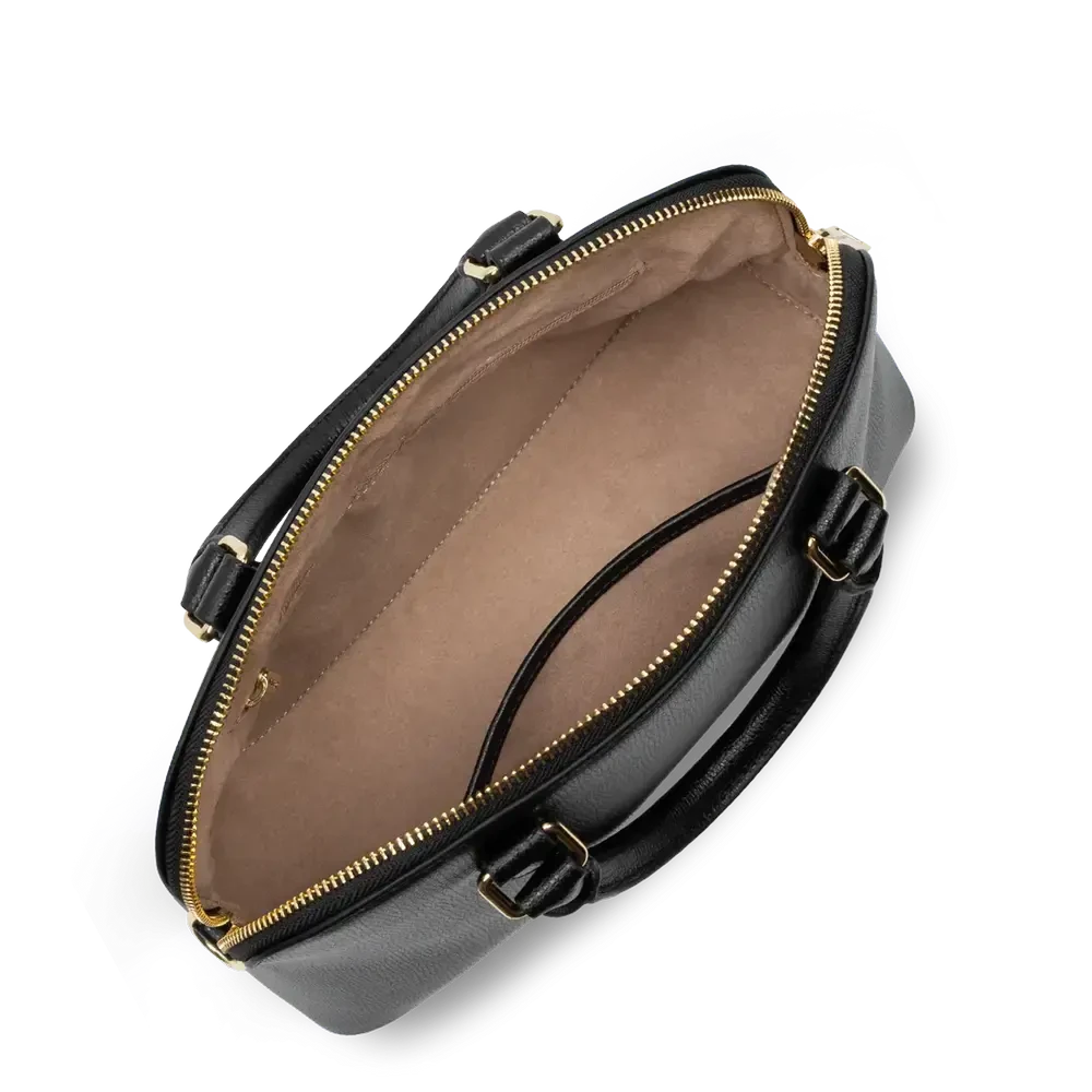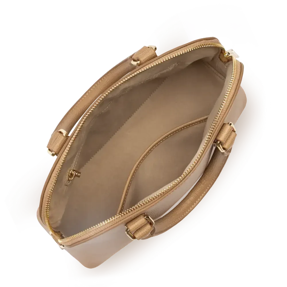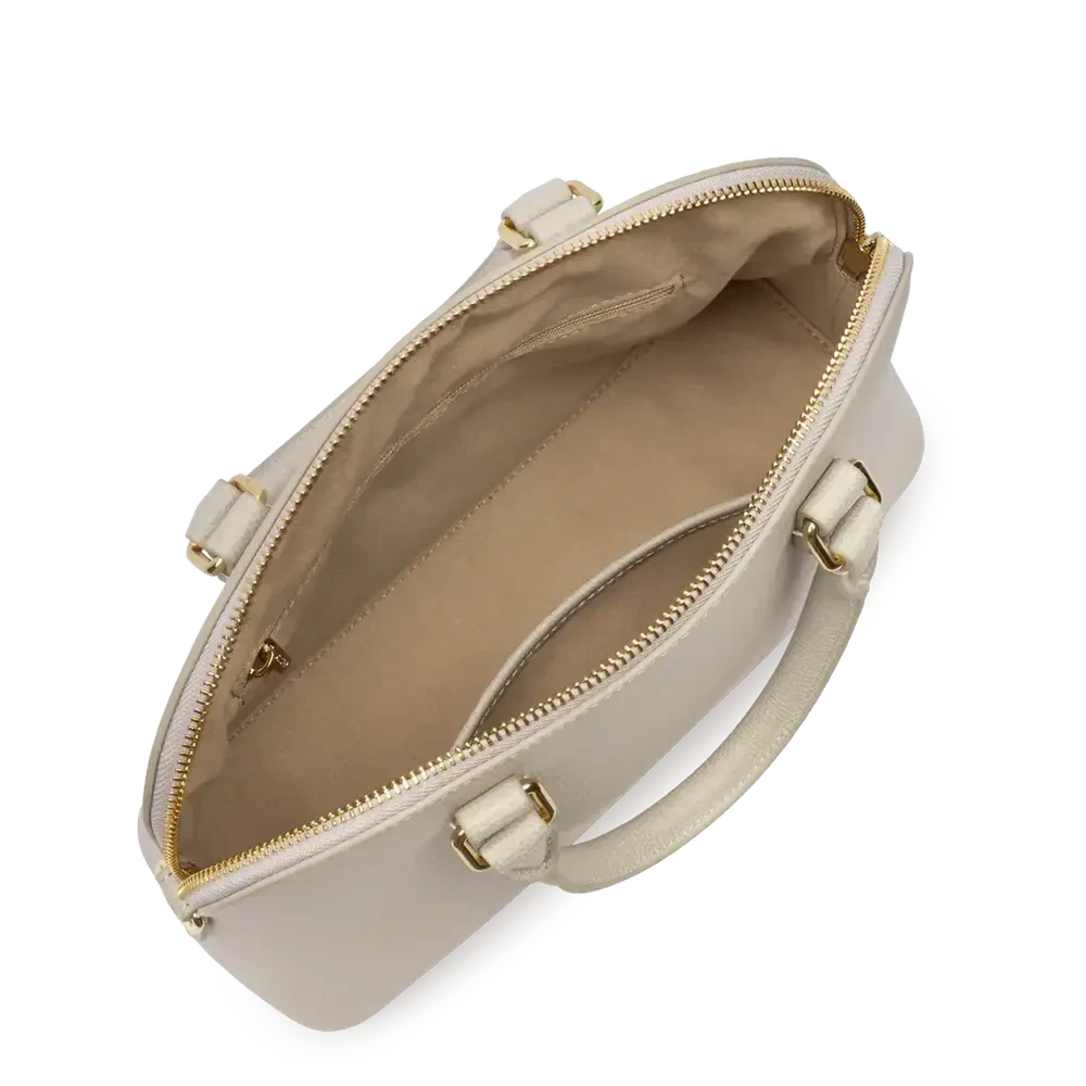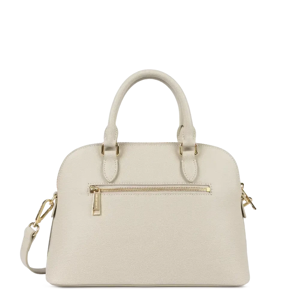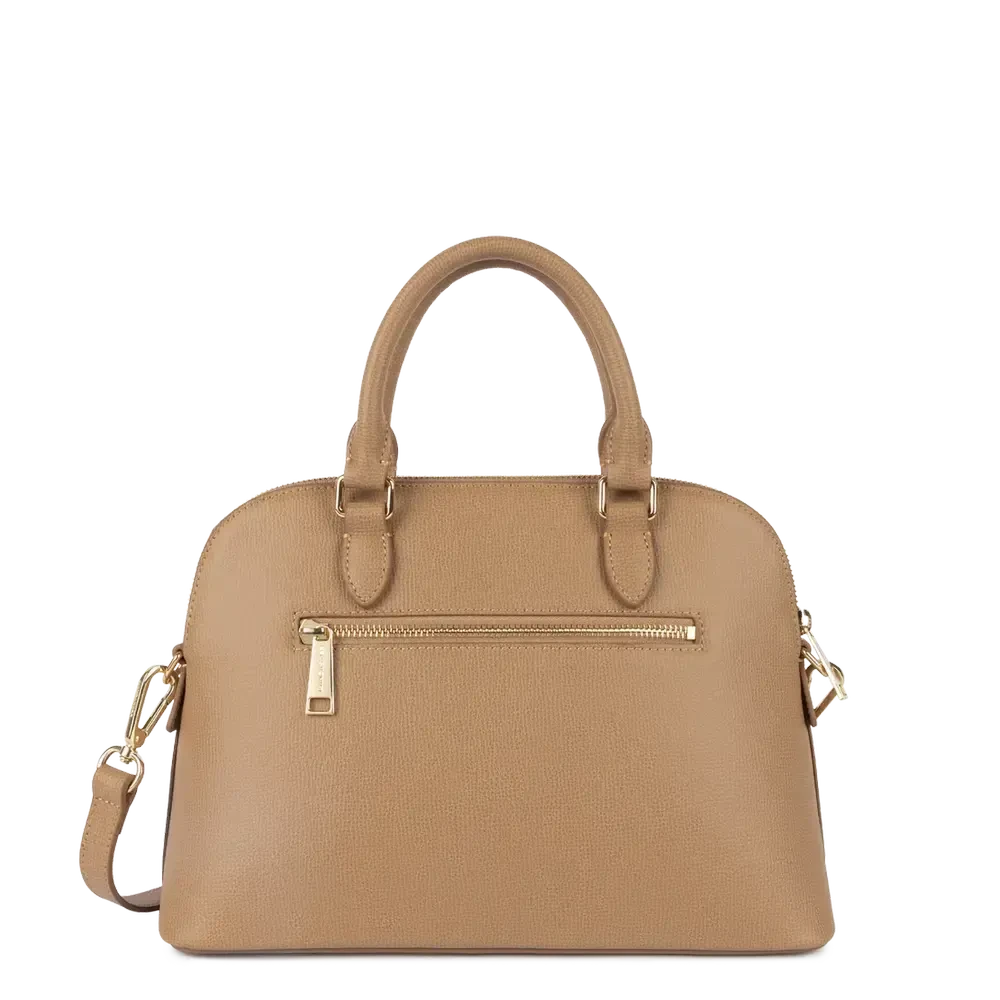 Porté : Main, épaule ou travers (anses doubles non réglables + bandoulière amovible et ajustable de 84 cm à 121 cm)