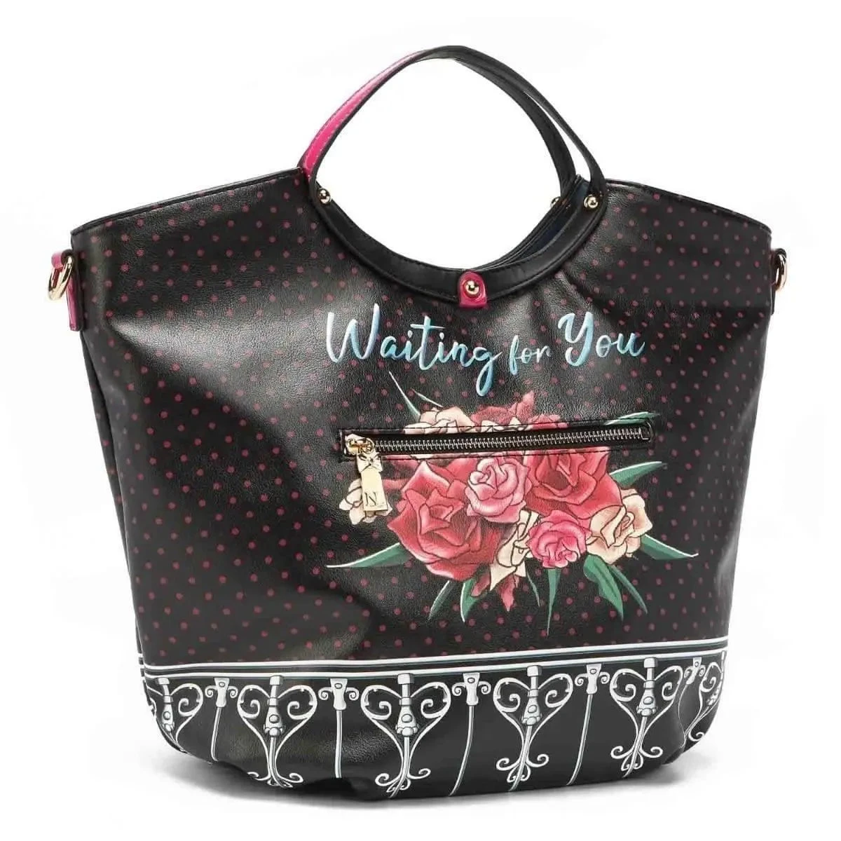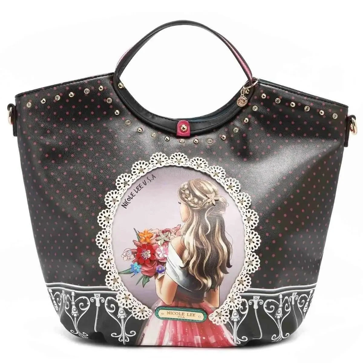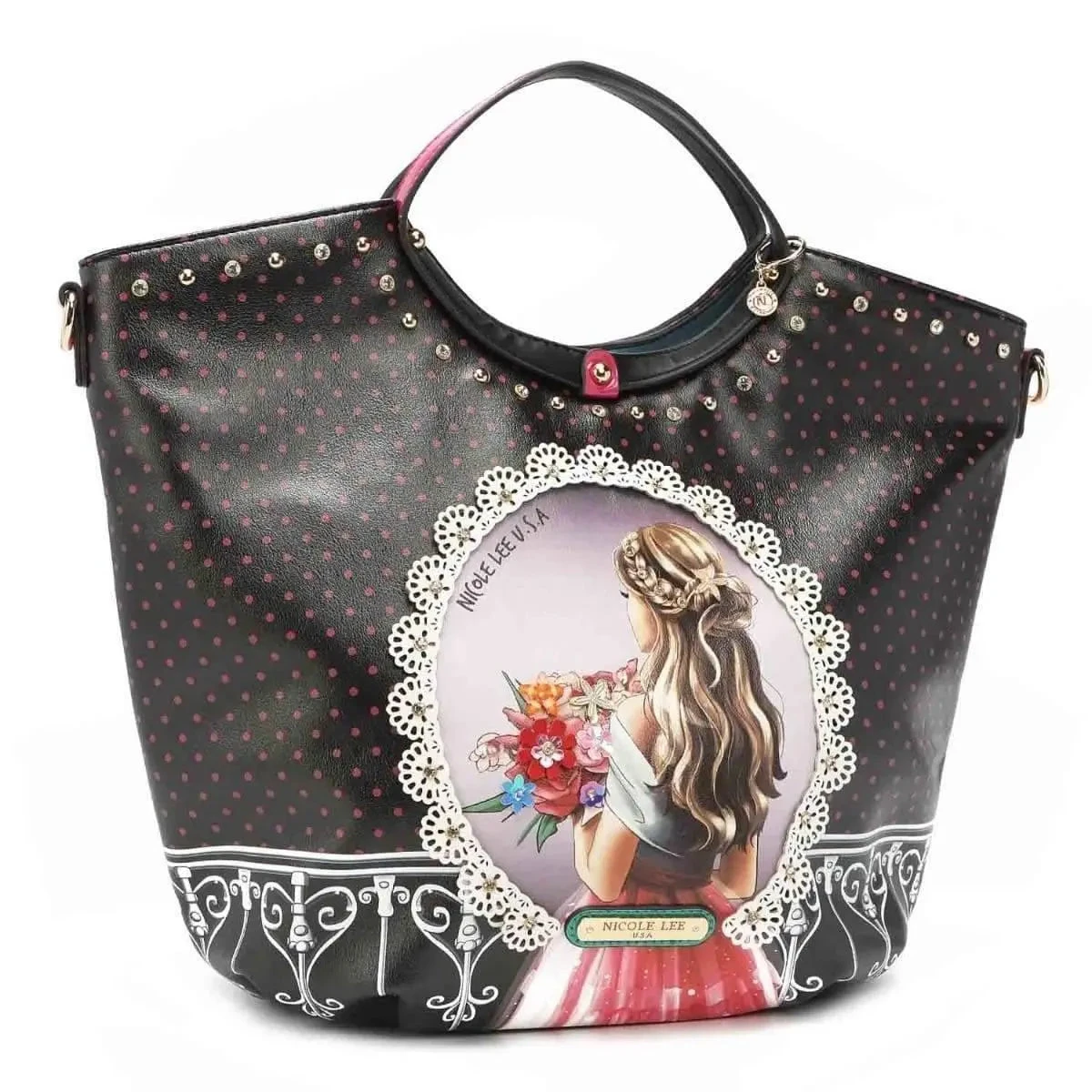 Le sac Nicole Lee « Waiting for You » est le compagnon idéal pour celles qui cherchent à mobiliser un mélange de sophistication et d’impressionnantes fonctionnalités. Irrésistible et raffiné, ce sac est doublé d’une doublure premium avec logo NL, et ornée de strass et de pendentifs. Il est conçu avec un fermoir principal à glissière, 2 poignées et une bandoulière réglable et amovible. Ce sac est également équipé d’une poche arrière zippée et d’une plaque porte-nom monogrammée dorée à l’avant. Laissez-vous séduire par son charme éternel.