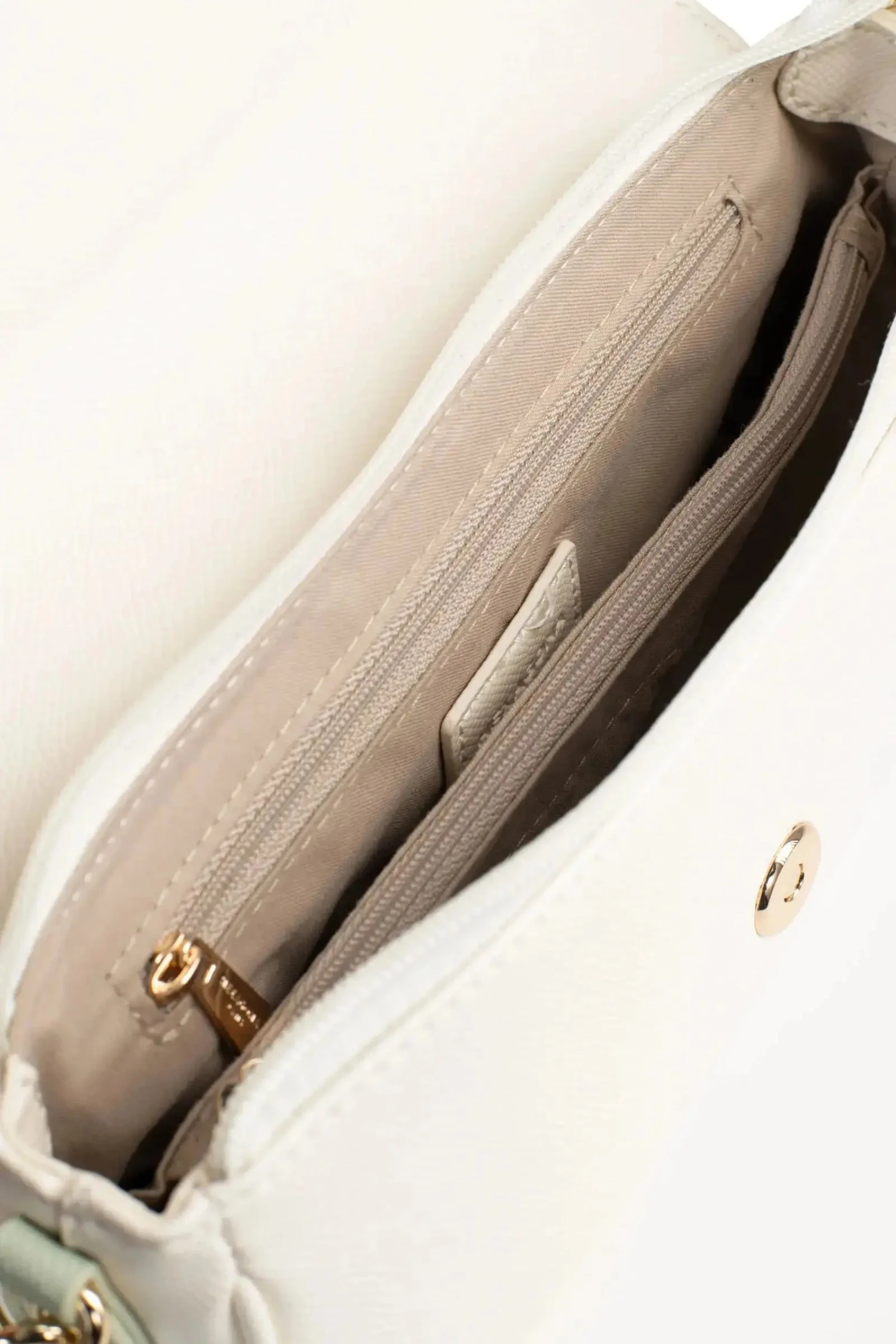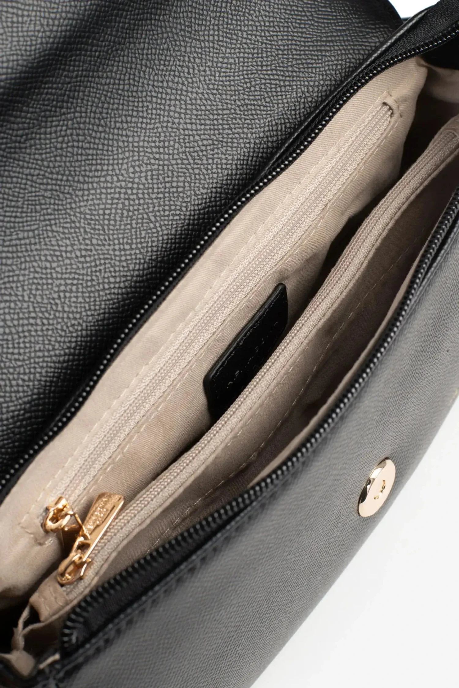 Ce sac dispose d’un intérieur organisé avec un compartiment principal, une poche de séparation zippée, une poche plate zippée, et une poche plate supplémentaire. À l’extérieur, une poche arrière plate zippée permet un accès rapide à vos essentiels. Il est doté d’une fermeture à rabat aimanté ainsi qu’une fermeture zippée pour une sécurité renforcée. Grâce à son anse amovible (52 cm) et sa bandoulière réglable amovible (71 cm à 133 cm), il offre plusieurs options de port confortables et adaptées à toutes vos tenues.