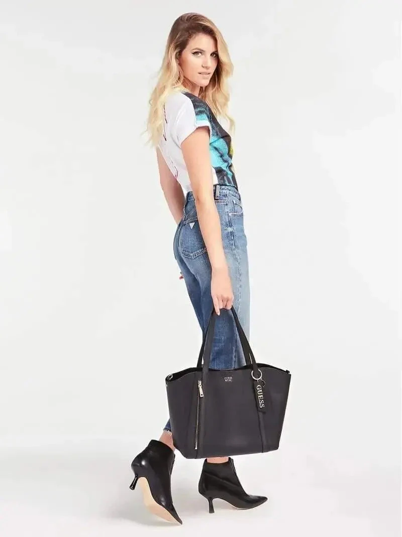 Le Sac Cabas Guess Naya est le compagnon idĂ©al pour les femmes qui ont le goĂ»t du luxe et veulent un style unique. Ce sac en synthĂ©tique dispose d’une pochette amovible zippĂ©e, d’une poche zippĂ©e en façade et d’une poche plate intĂ©rieure et est Ă©quipĂ© d’un logo Guess sur la base de l’anse, de finitions mĂ©talliques couleur or pâle et d’un lettrage logo en mĂ©tal. Sa taille de 33x29x12 cm offre un espace de rangement pratique et Ă©lĂ©gant.