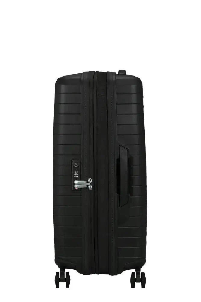 La Valise American Tourister « FastForward » est conçue pour les **séjours de moyenne durée**, offrant une capacité **extensible de 67 à 77 litres** pour un rangement optimisé. Son **design rigide et ses roues à suspension** garantissent un **déplacement fluide et silencieux**.